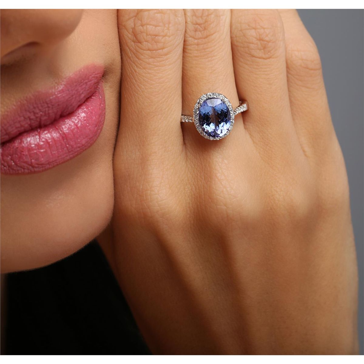 One ring featuring: 18KT white gold weighing 3.70 grams containing one tanzanite center stone with a total weight of 3.38ct and 32 round cut diamonds with a total weight of 0.39cts.