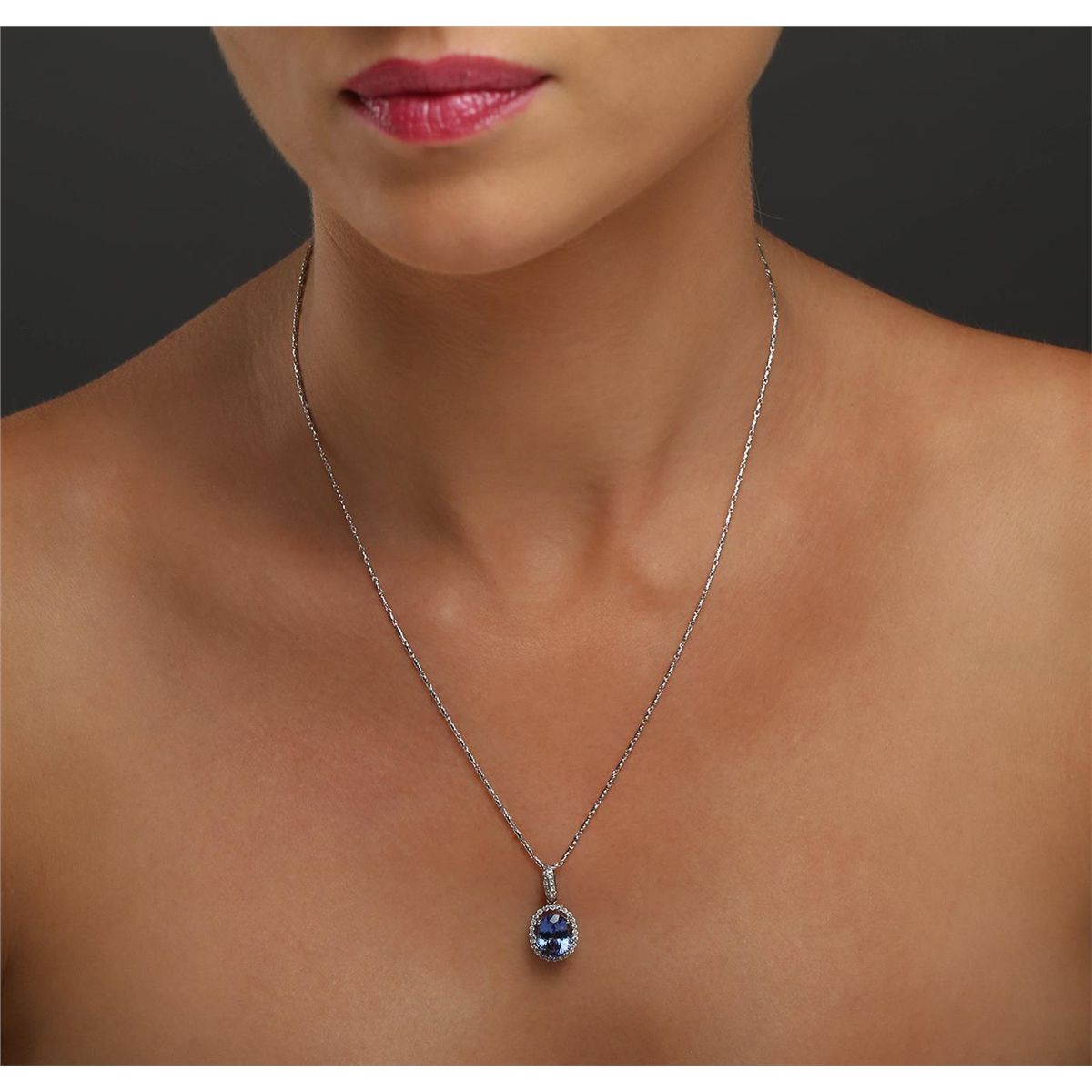One electronically tested 18KT White Gold ladies cast & assembled tanzanite and diamond pendant with chain. The pendant features a tanzanite set within a diamond bezel, completed by a diamond set bail. The pendant is supported by an eighteen inch length 14KT White Gold designer style chain, terminating in a lobster claw clasp. Bright polish finish. Identified with markings of "18K". Condition is new, good workmanship. Containing: One prong set oval mixed cut natural tanzanite, measuring 10.10 x 8.00 x 5.90mm, 8% bulge factor, approximate weight of 3.50ct., clarity is eye clean, type I, medium dark, slightly grayish, bluish violet color, (GIA bV 6/2), cut is good. Transmitting light with no distortion, transparent. Graded in the setting. Tanzanite is a very rare gemstone that is only found in the country of Tanzania. Originally discovered in 1967. Tiffany & Company, named the stone Tanzanite. It is found in the Usumburu Mountains that border the Umba Valley of northern Tanzania. Tanzanite occurs in gray, brown, violet, blue, reddish-purple, & green. The gem is interesting because of its exceptional pleochroism. Rotated in different directions a tanzanite will exhibit multiple changes of color. Tanzanite has a low tolerance to ultrasonic cleaning, and should not be cleaned using this method. Thirty-Four prong set round brilliant cut diamonds, measuring 1.40 - 1.20 x 0.78mm (depth est.) approximate total weight of 34 Stones = 0.37ct. Graded in the setting. Clarity: VS-1 to SI-1. Color: G - I. Total Weight of Colored Stones 3.50ct. Total Weight of Diamonds 0.37ct. Total Weight of Pendant With Chain 6.67 grams. AIG Appraised at $9,740.00.