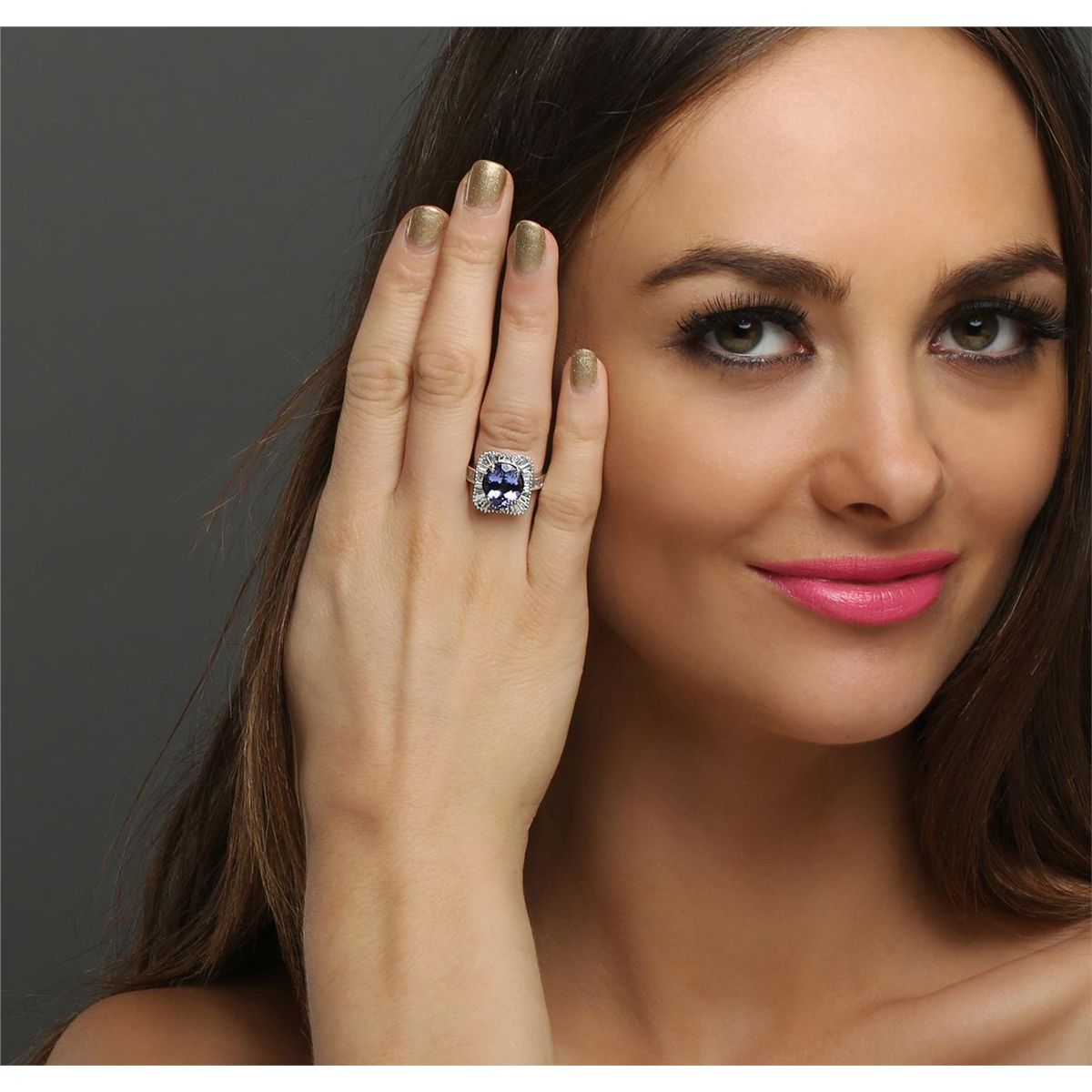 One electronically tested 18KT white gold ladies combination cast & assembled prong set ring with a bright polish finish. Identified with markings of "750". Condition is new. Containing: One prong set oval modified brilliant cut natural tanzanite, measuring 11.50 x 8.63 x 5.52mm, approximate weight of 3.75ct., clarity is eye clean, type I, medium light, very slightly grayish, violet color, (GIA V 4/3), cut is good. Fifty-Nine channel set baguette cut diamonds, measuring 2.50 x 1.10 x 1.08mm (depth est.) approximate total weight of 59 Stones = 1.16ct. Clarity: VS-2. Color: H, Cut is Good. Colored gemstones are presumed to have been subjected to commonly used enhancement processes. All diamonds and colored gemstones are graded in the mounting, unless otherwise stated. Total Weight of Colored Stones 3.75ct. Total Weight of Diamonds 1.16ct. Total Weight of Ring 7.10 grams. GGL Appraised at $11,200.00.