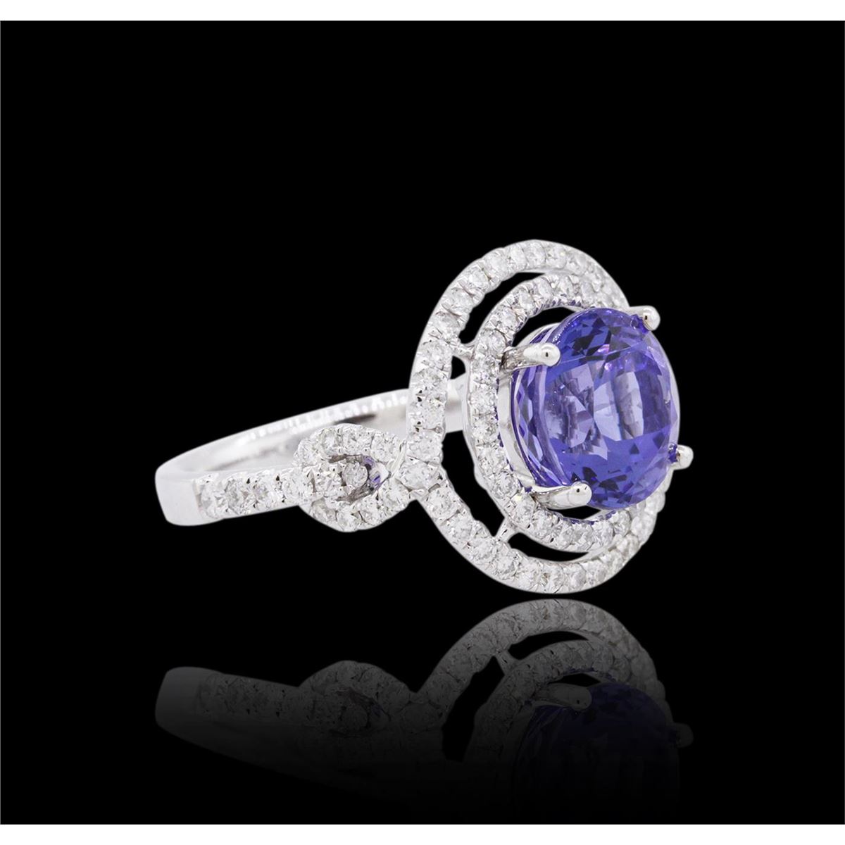 One ring featuring: 18KT white gold weighing 5.00 grams containing one tanzanite center stone with a total weight of 3.83ct and 88 round cut diamonds with a total weight of 0.90cts.