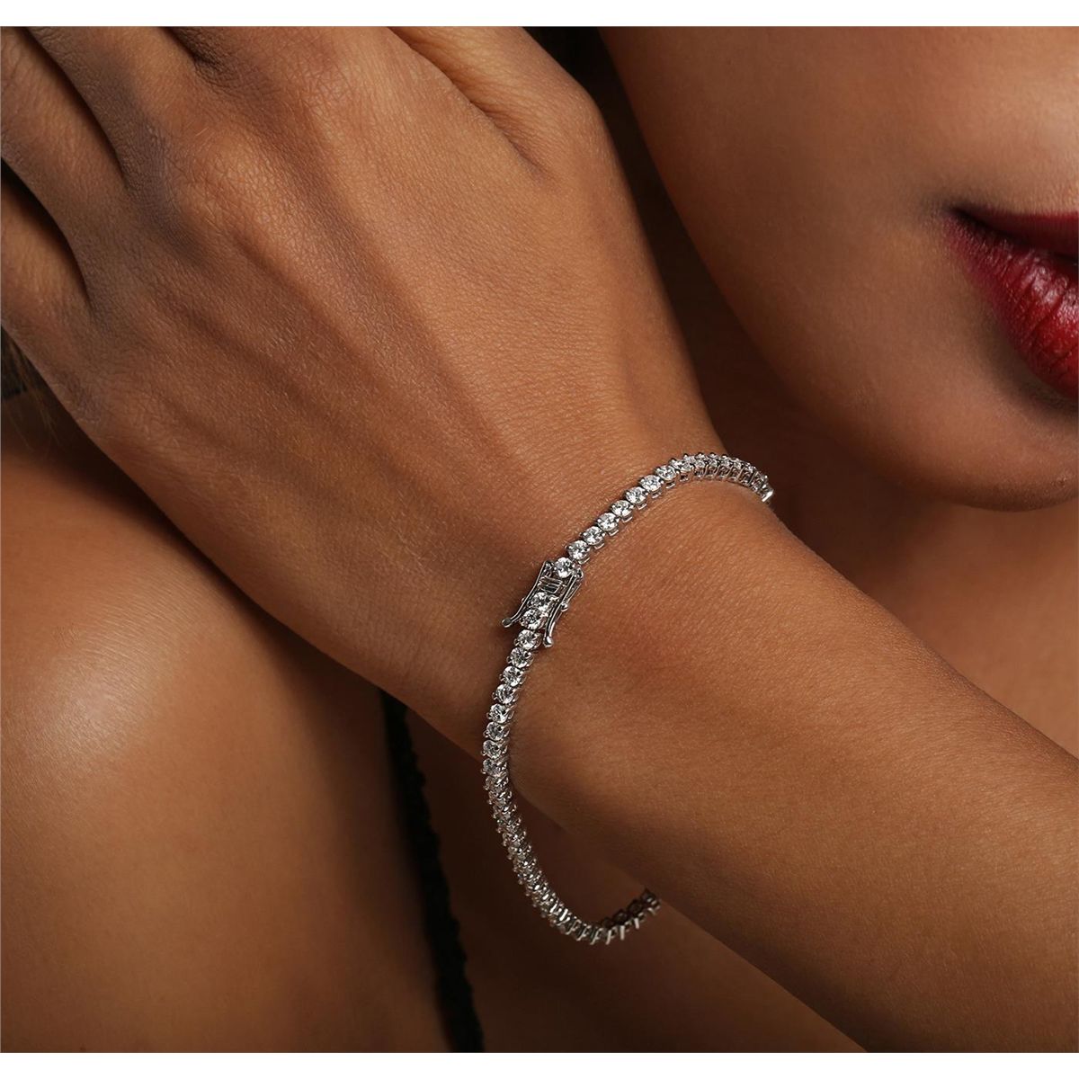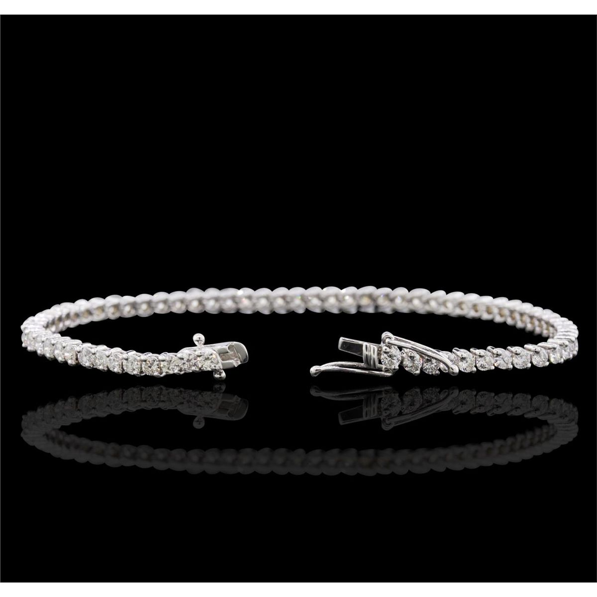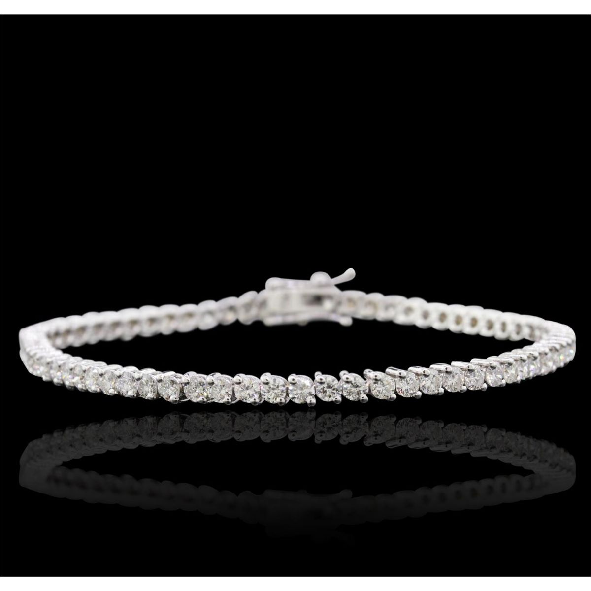 One electronically tested 18KT white gold ladies combination cast & assembled diamond tennis bracelet with a hidden box clasp with safety closer with a bright polish finish. Measurements: 7.25" in length. Identified with markings of "750". Condition is new. Containing: Sixty-Eight prong set round brilliant cut diamonds, measuring 2.50 - 2.50 x 1.50mm (depth est.) approximate total weight of 68 Stones = 3.88ct. . Clarity: I-1 to I-2. Color: G - I, Cut is Very Good. All diamonds are graded in the mounting, unless otherwise stated.. Total Weight of Diamonds 3.88ct.. Total Weight of Tennis Bracelet 9.40 grams. GGL Appraised at $11,465.00.