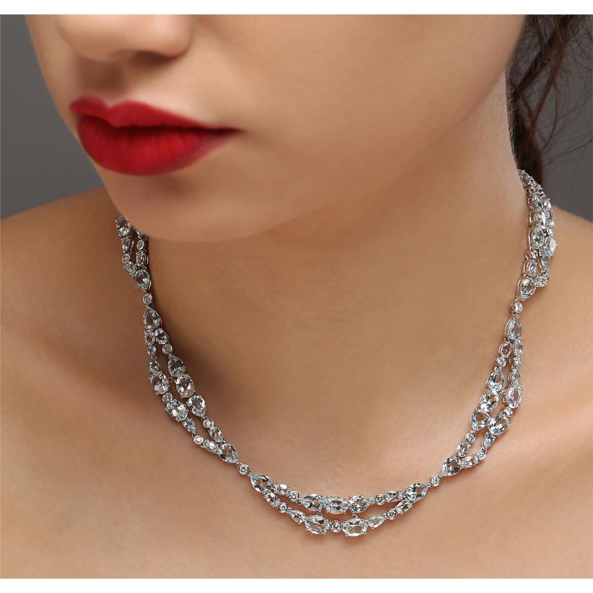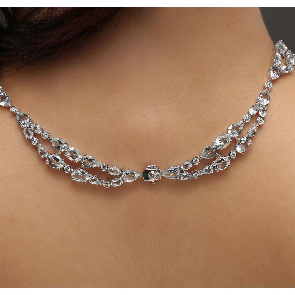 One necklace featuring: 18KT white gold weighing 34.14 grams containing 91 aquamarines with a total weight of 38.75ct and 42 round diamonds with a total weight of 1.78ct.