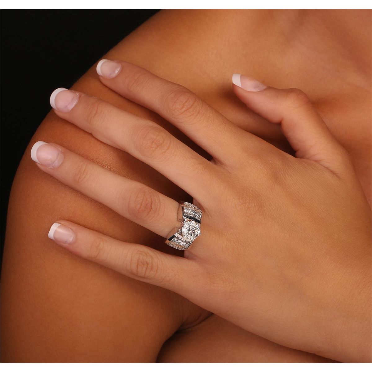 One electronically tested 18KT white gold Ladies combination cast & assembled engagement ring with a bright polish finish. Condition is new. Identified with markings of "18K". Containing: One prong set round brilliant cut diamond, measuring 8.50 - 8.50 x 5.40mm (depth est.) approximate weight of 2.38ct. Clarity: I-2. Color: J, Cut is Good. Twenty-Four invisible set princess cut diamonds, measuring 2.00 x 2.00 x 1.50mm (depth est.) approximate. Total Weight of 24 Stones = 1.18ct. Clarity: SI-1 to SI-2. Color: J - K, Cut is Good. Ten invisible set baguette cut diamonds, measuring 3.50 x 1.50 x 1.13mm (depth est.) approximate. Total Weight of 10 Stones = 0.60ct. Clarity: VS-2. Color: J - K, Cut is Good. Total Weight of Diamonds 4.16ct. Total Weight of Engagement Ring 15.30 grams. GGL Appraised at $36,070.00.