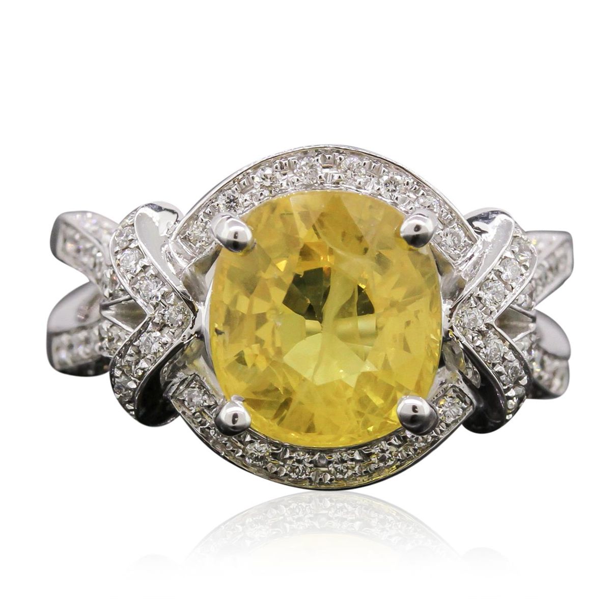 One ring featuring: 18KT white gold with a total weight of 7.70 grams, yellow sapphire with a total weight of 4.31ct, and diamonds with a total weight of 0.73ctw.
