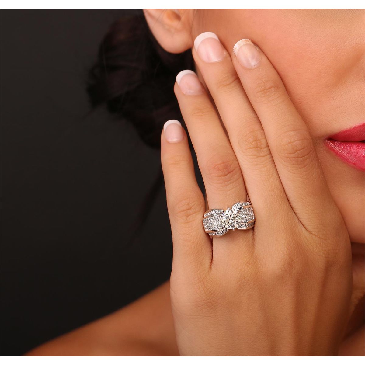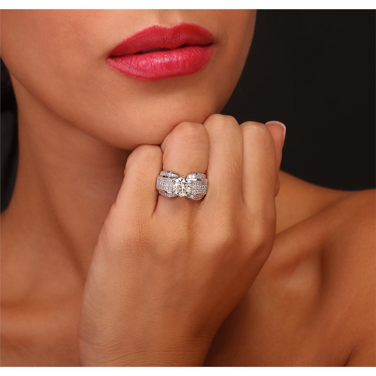 One electronically tested 18KT white gold Ladies combination cast & assembled engagement ring with a bright polish finish. Condition is new. Identified with markings of "18K". Containing: One prong set round brilliant cut diamond, measuring 7.81 - 7.74 x 5.50mm (depth est.) approximate weight of 2.02ct. Clarity: I-2. Color: J, Cut is Good. Eighty invisible set round brilliant cut diamonds, measuring 1.90 - 1.50 x 1.02mm (depth est.) approximate. Total Weight of 80 Stones = 2.33ct. Clarity: SI-1 to SI-2. Color: I - J, Cut is Good. Diamonds graded in the mounting. Total Weight of Diamonds 4.35ct. Total Weight of Ring 14.20 grams. GGL Appraised at $33,515.00.