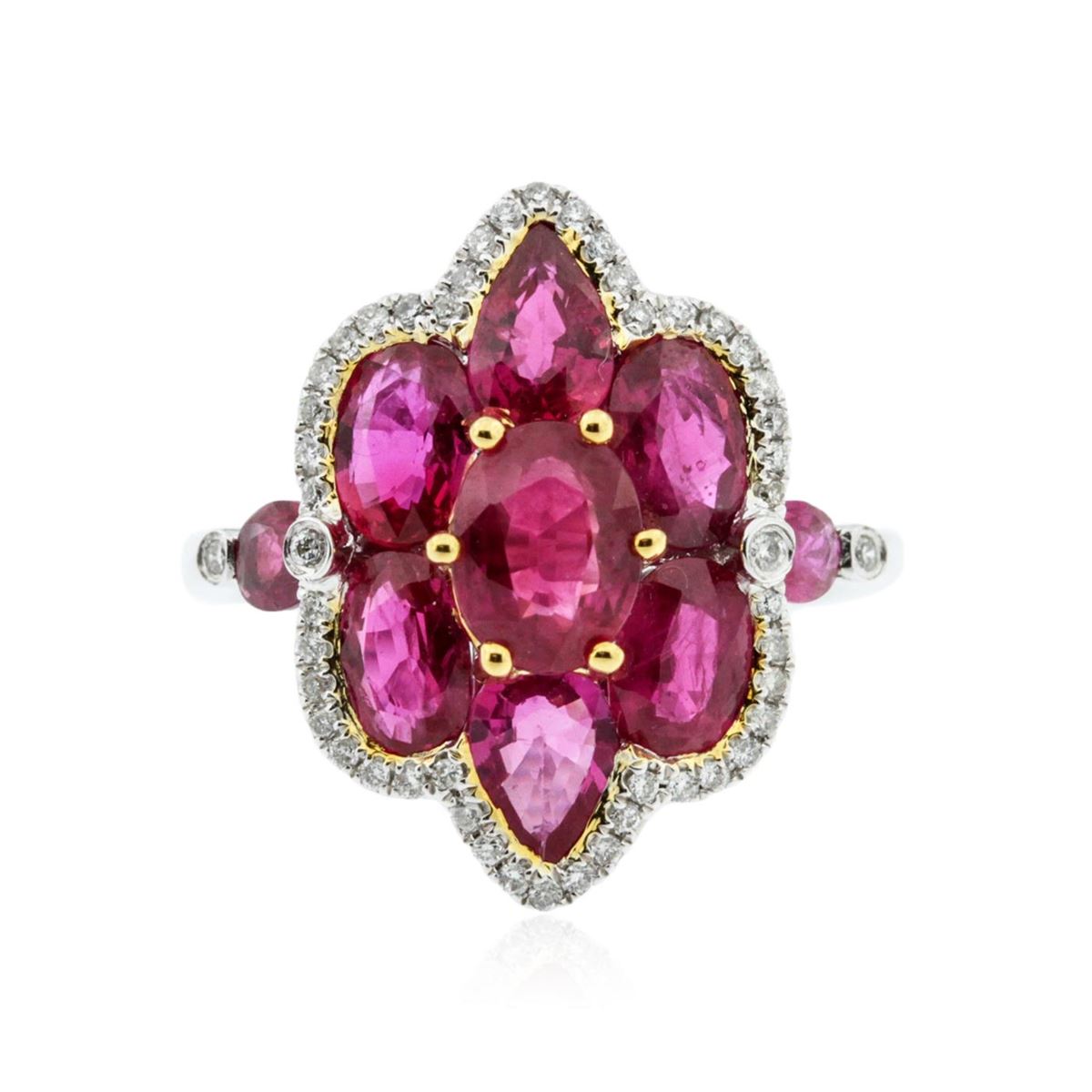 One ring featuring: 18KT white gold weighing 3.95 grams containing nine rubies with a total weight of 4.50ct and 50 round diamonds with a total weight of 0.18ct.