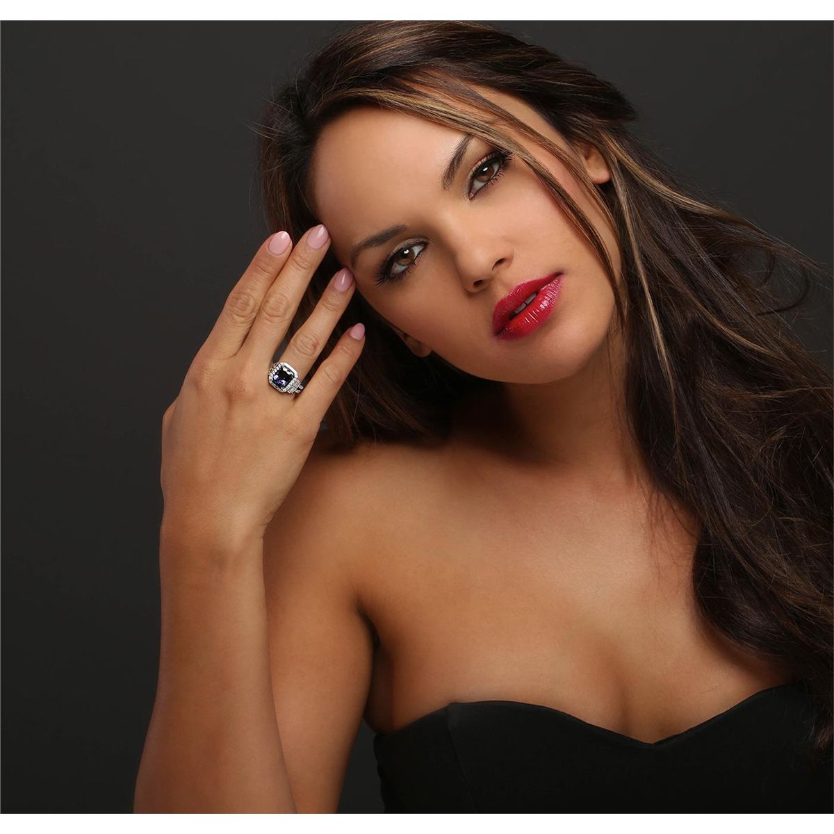 One electronically tested 18KT white gold ladies combination cast & assembled tanzanite and diamond ring with a split shank with a bright polish finish. Identified with markings of "750". Condition is new. Containing: One prong set rectangular cushion modified brilliant cut natural tanzanite, measuring 10.92 x 8.58 x 6.34mm, approximate weight of 4.68ct., clarity is eye clean, type I, medium, moderately strong, violet color, (GIA V 5/4), cut is very good. Forty-Five prong set round brilliant cut diamonds, measuring 1.50 - 1.30 x 0.84mm (depth est.) approximate total weight of 45 Stones = 0.45ct. Clarity: SI-2 to I-1. Color: I - J, Cut is Good. Twelve channel set baguette cut diamonds, measuring from 2.10 x 1.50 x 1.28mm (depth est.) to 3.00 x 1.50 x 1.28mm (depth est.) approximate total weight of 12 Stones = 0.54ct. Clarity: SI-1. Color: I - J, Cut is Good. Colored gemstones are presumed to have been subjected to commonly used enhancement processes. All diamonds and colored gemstones are graded in the mounting, unless otherwise stated. Total Weight of Colored Stones 4.68ct. Total Weight of Diamonds 0.99ct. Total Weight of Ring 9.00 grams. GGL Appraised at $12,830.00.