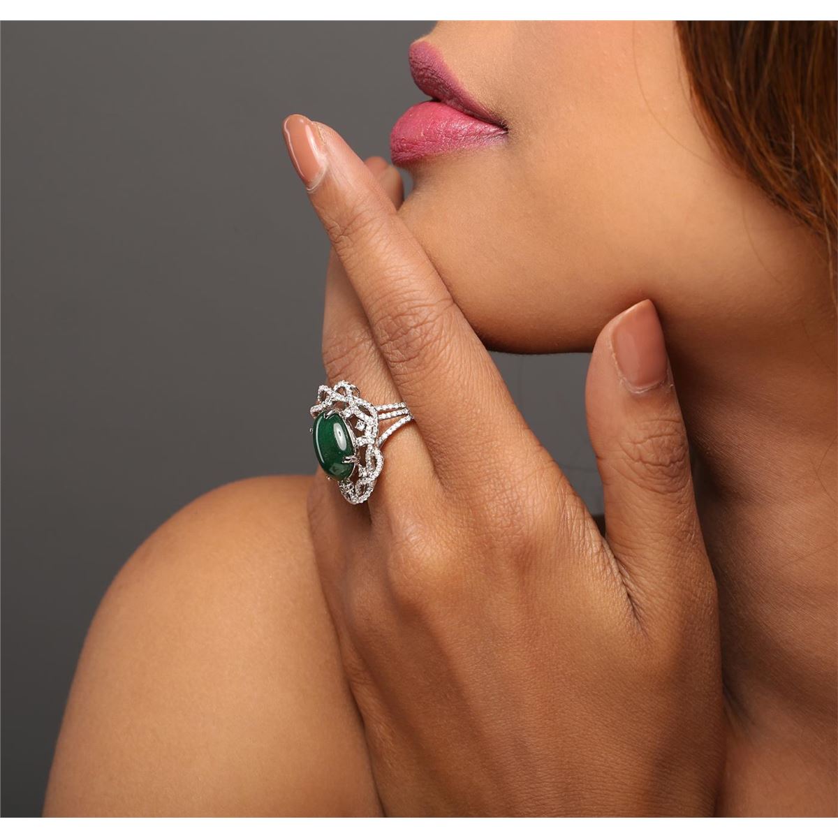 One ring featuring: 18KT white gold weighing 6.73 grams containing one green opal center stone with a total weight of 4.72ct and 162 round diamonds with a total weight of 0.96cts.