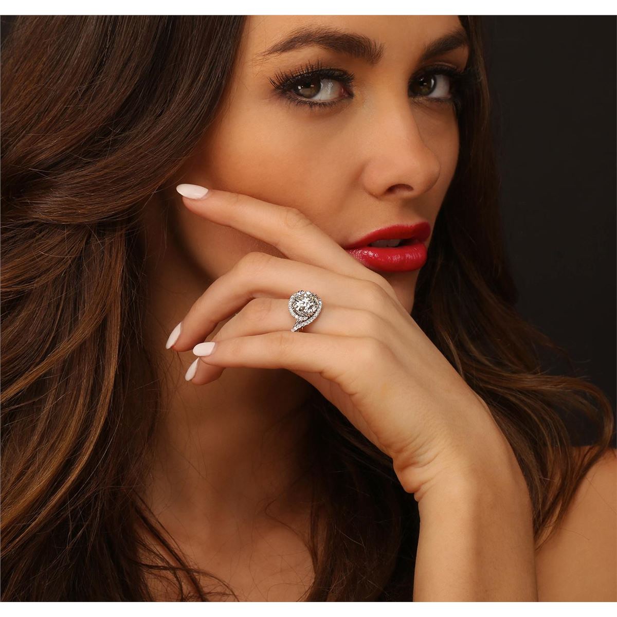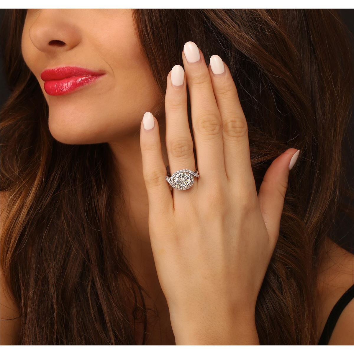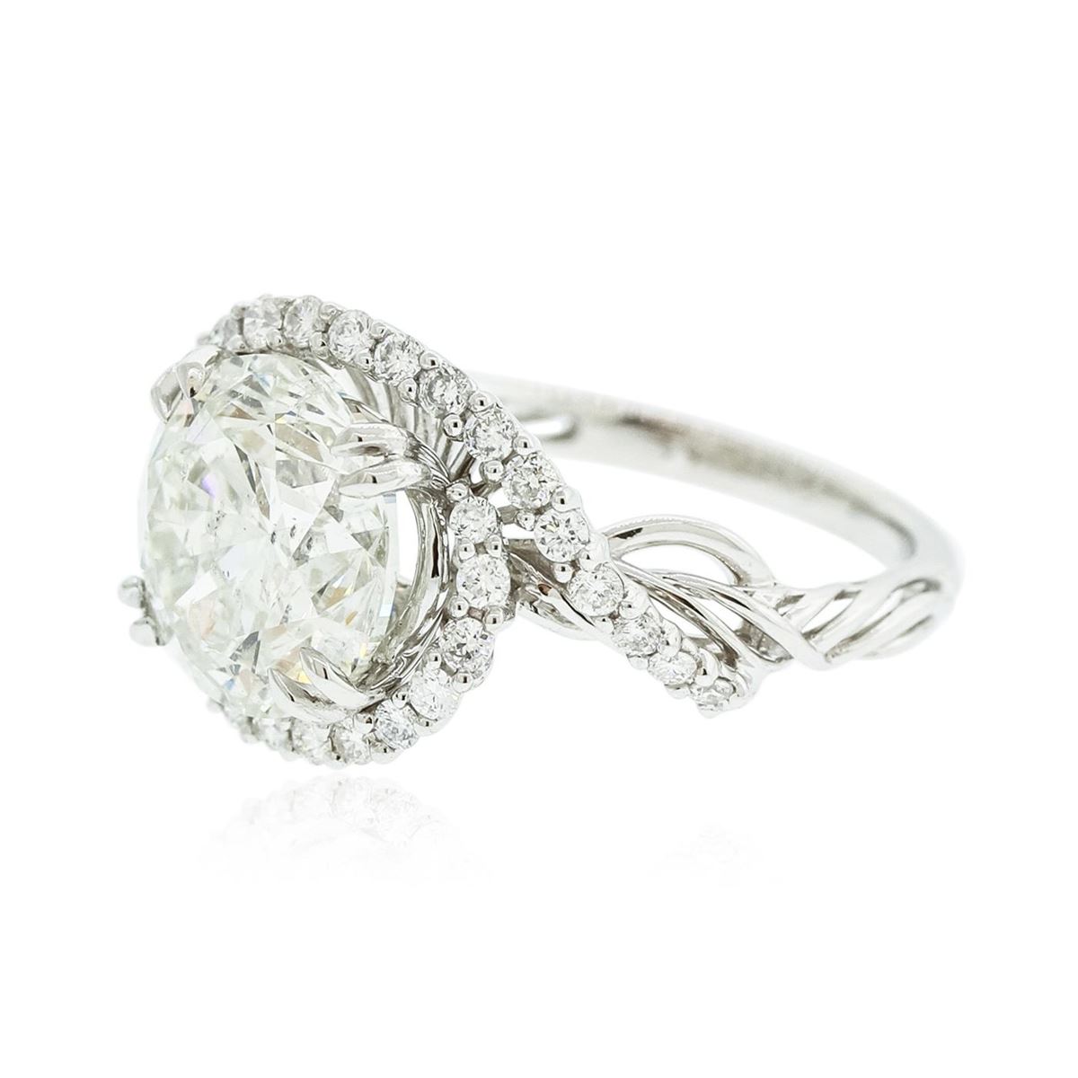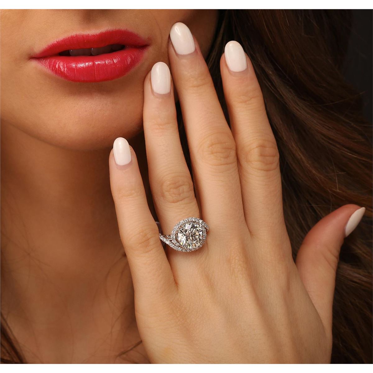 One electronically tested 18KT White Gold ladies cast & assembled diamond unity ring with a bright polish finish. Condition is new, good workmanship. The featured diamond is set within a diamond bezel supported by elaborate intertwining diamond set shoulders, completed by a one and one-half millimeter wide band. Identified with markings of "18K". Containing: One prong set round brilliant cut diamond, measuring 10.33 - 10.24 x 6.69mm exact weight 4.52. EGL Grading Report attached. Graded loose in the EGL Laboratory, Report #EGL2931441529. Clarity SI-2 Color H Depth 65.0% Table 58.0% Pavil Depth 44.0%. Thirty-four prong set round brilliant cut diamonds, measuring 1.60 - 1.50 x 0.93mm (depth est.) approximate total weight of 34 Stones = 0.56ct. Graded in the setting. Clarity VS-2 to SI-2. Color G-I. Total Weight of Diamond 5.08ct. Total Weight of Ring 5.14 grams. AIG Appraised at $211,915.00.