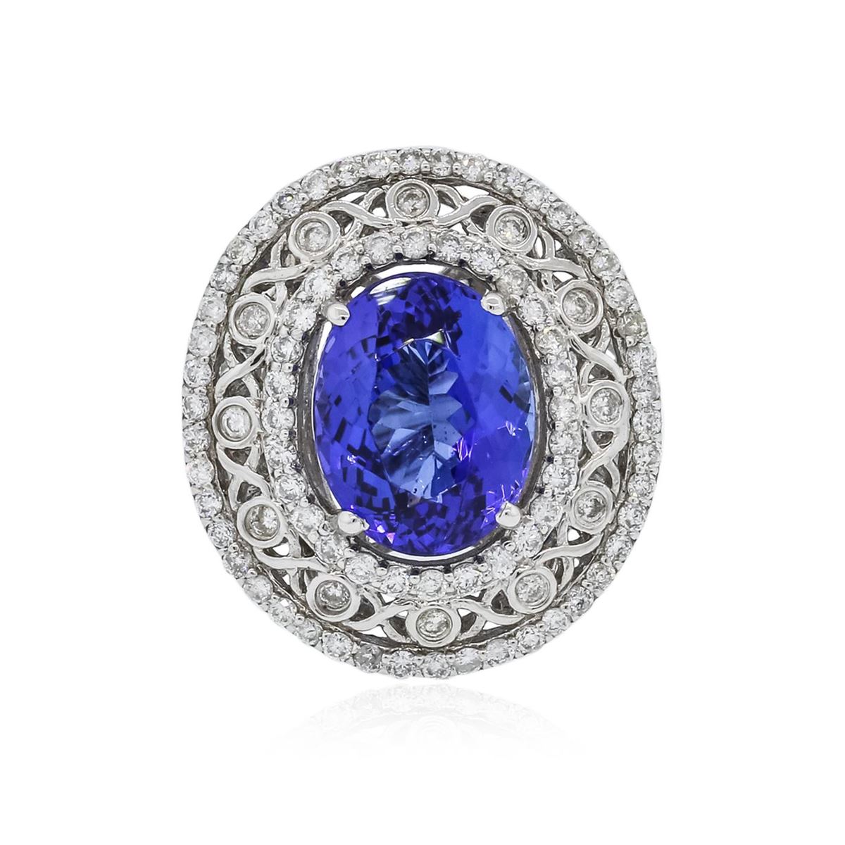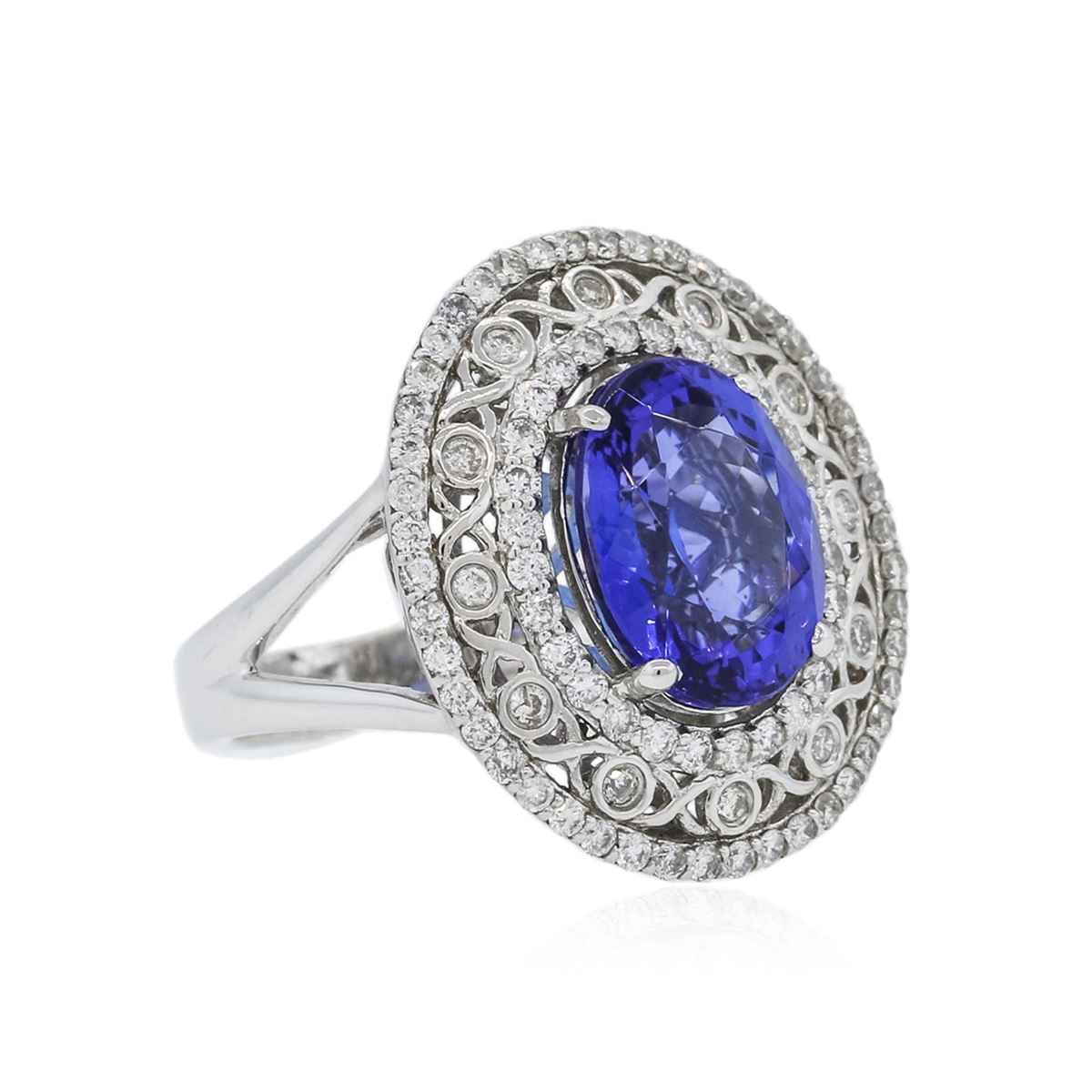 One ring featuring: 18KT white gold weighing 7.26 grams containing one tanzanite center stone with a total weight of 5.38ct and round diamonds with a total weight of 0.95ct.