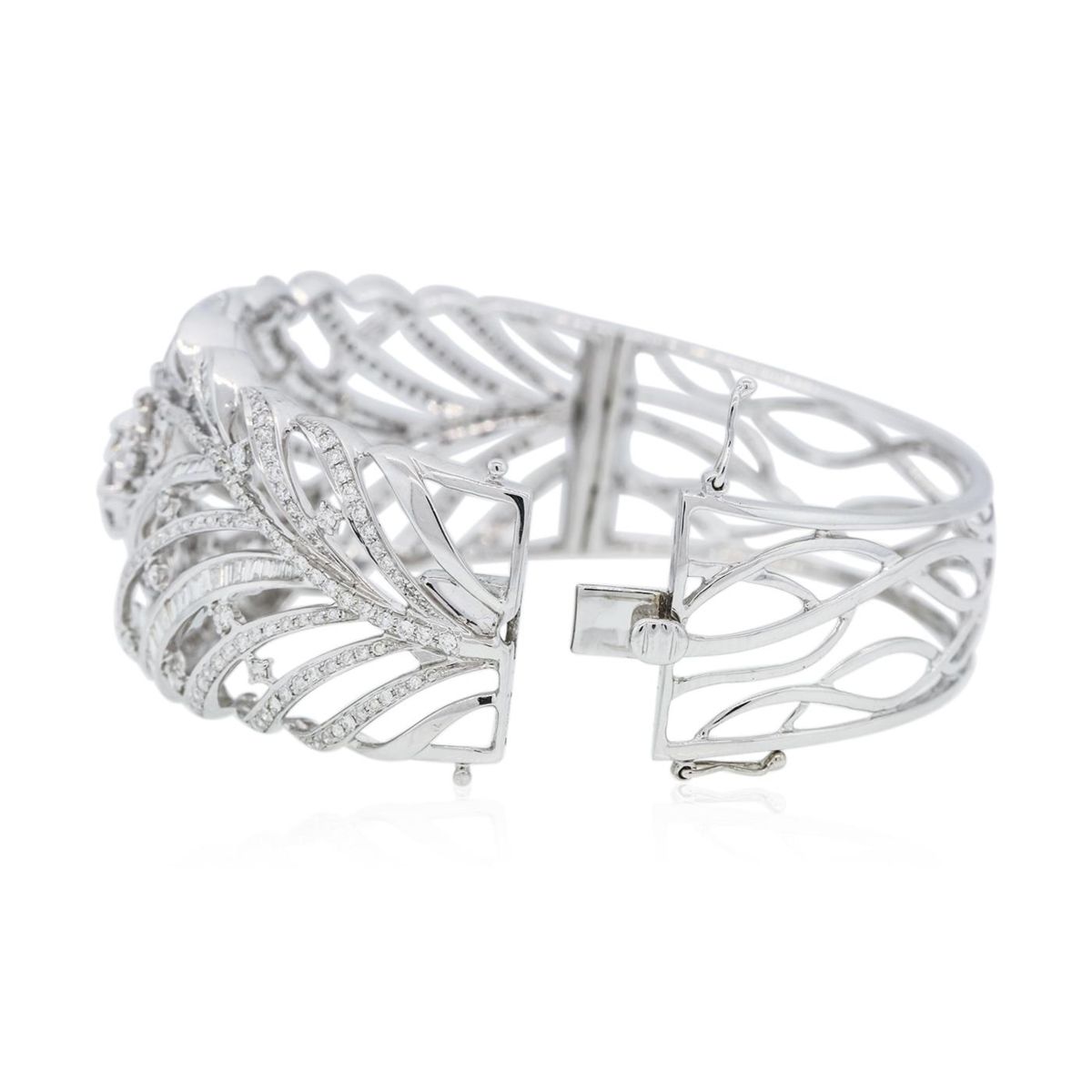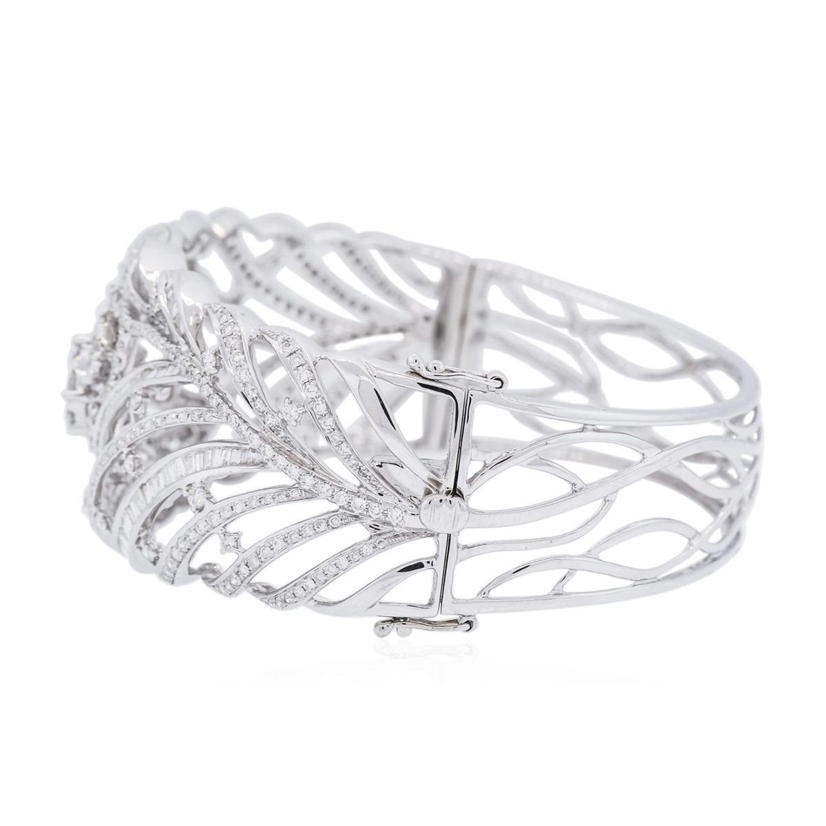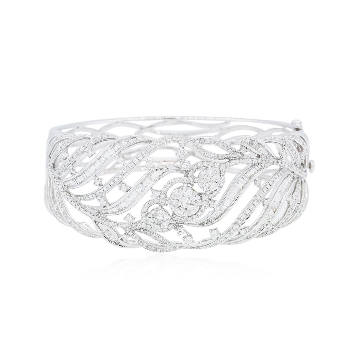 One bangle bracelet featuring: 18KT white gold weighing 38.50 grams containing 490 baguette cut/round diamonds with a total weight of 5.46ct.