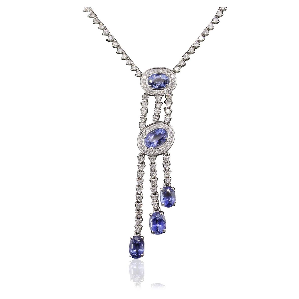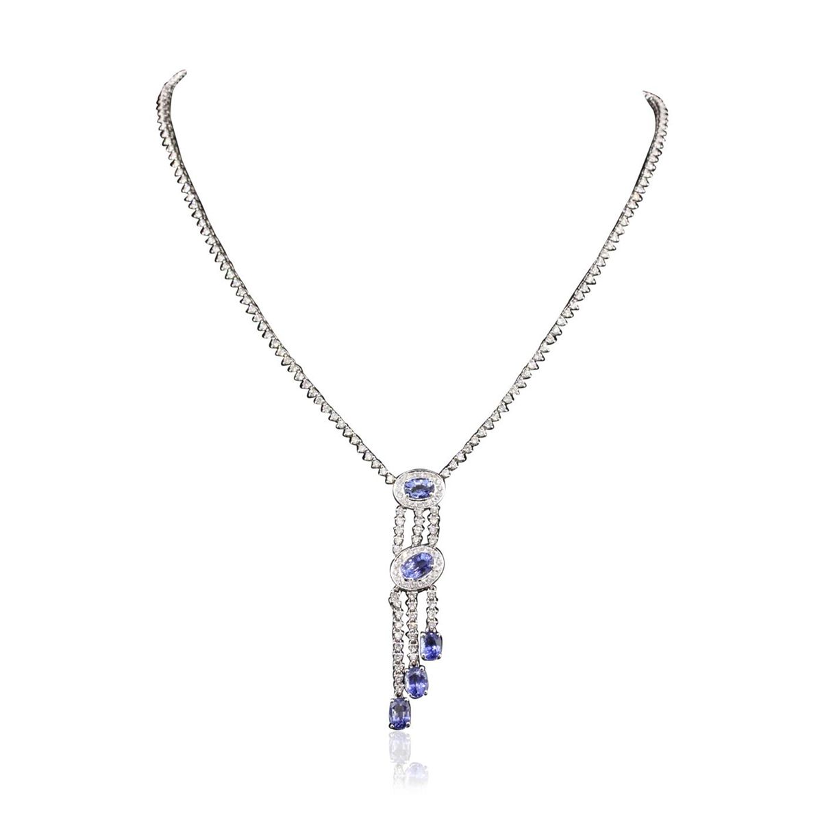 One necklace featuring: 18KT white gold with a total weight of 15.65 grams, (5) sapphires with a total weight of 5.58ctw, and (170) diamonds with a total weight of 3.01ctw.