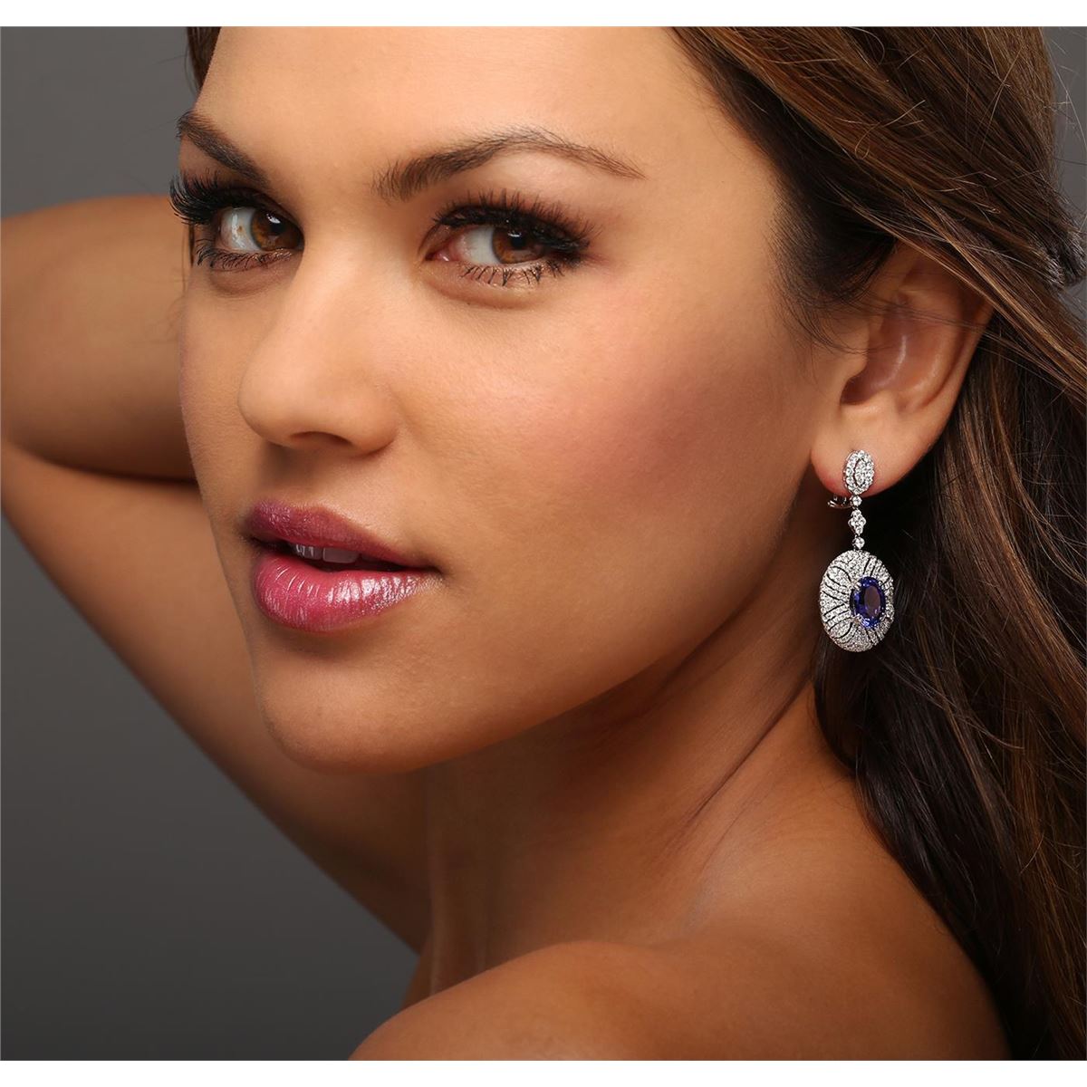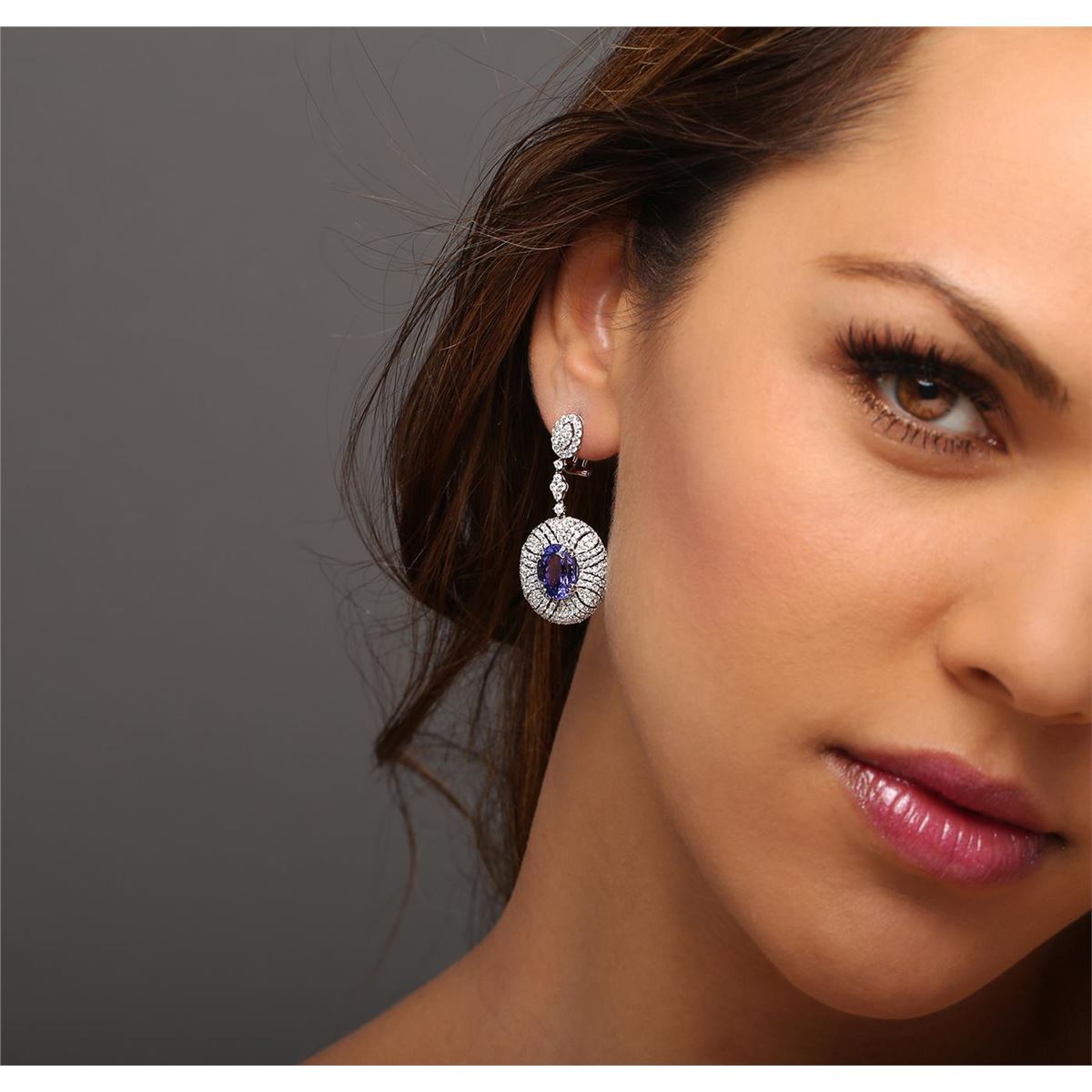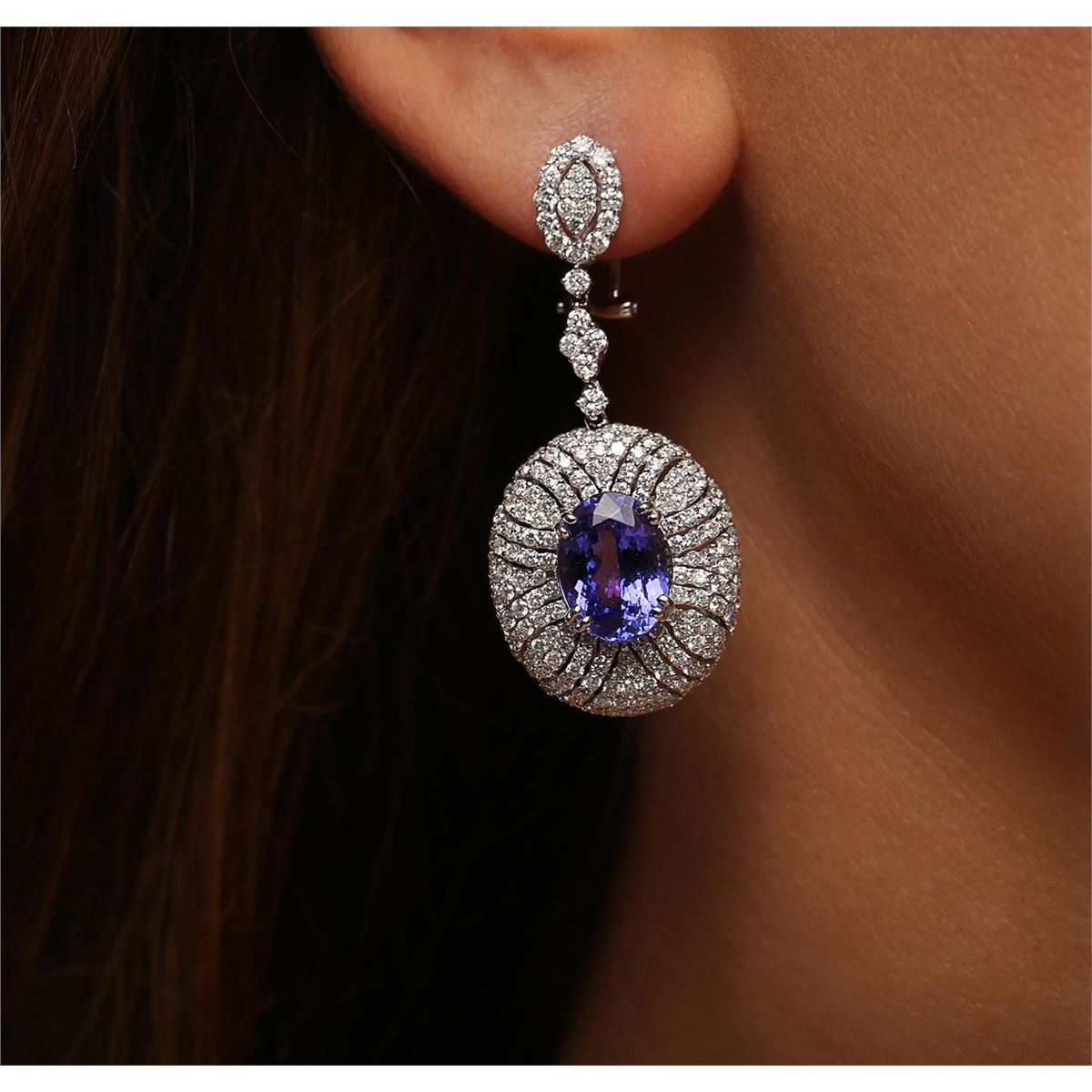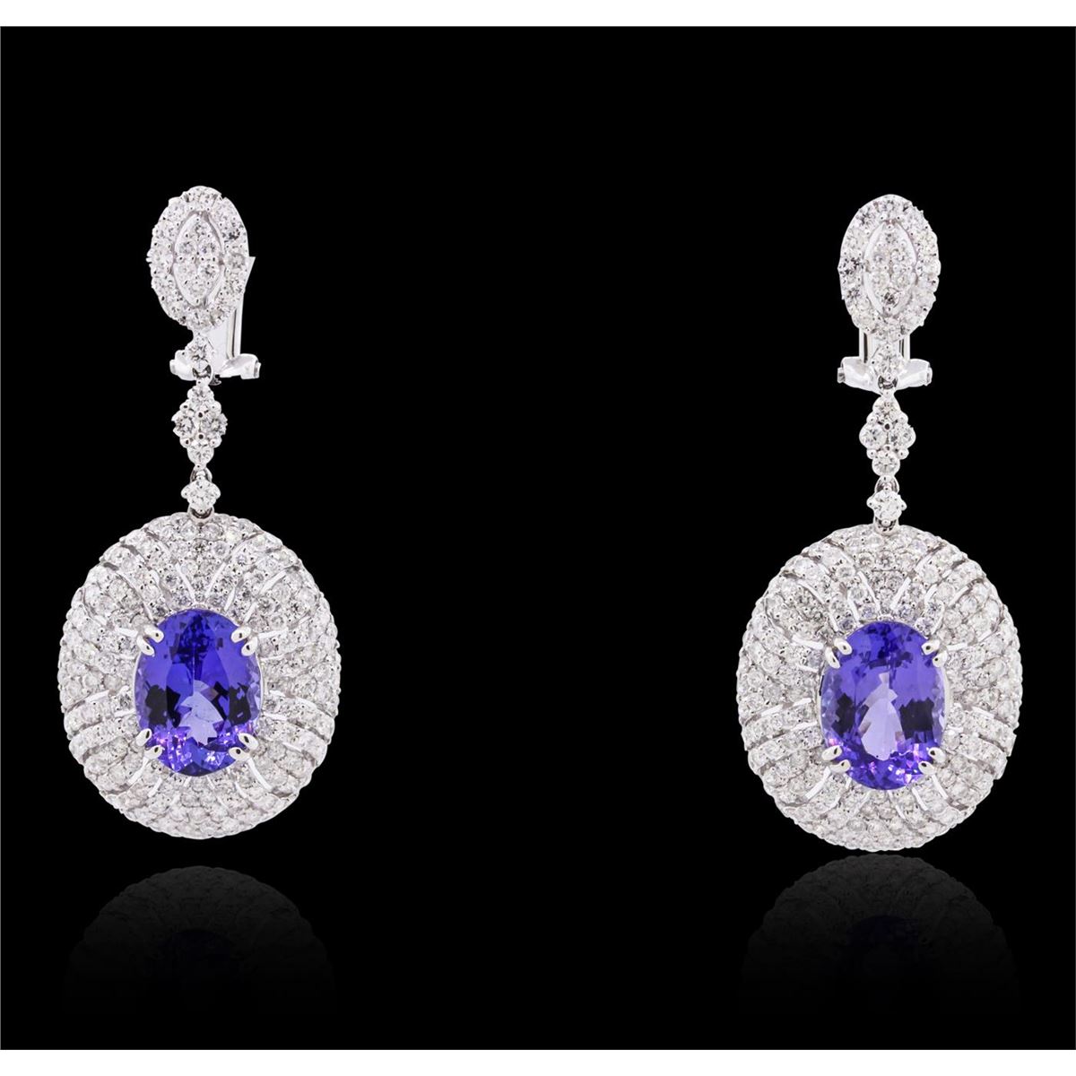One pair of earrings with lever backs featuring: 18KT white gold weighing 10.45 grams containing two tanzanites with a total weight of 7.32cts and 366 round diamonds with a total weight of 4.08cts.