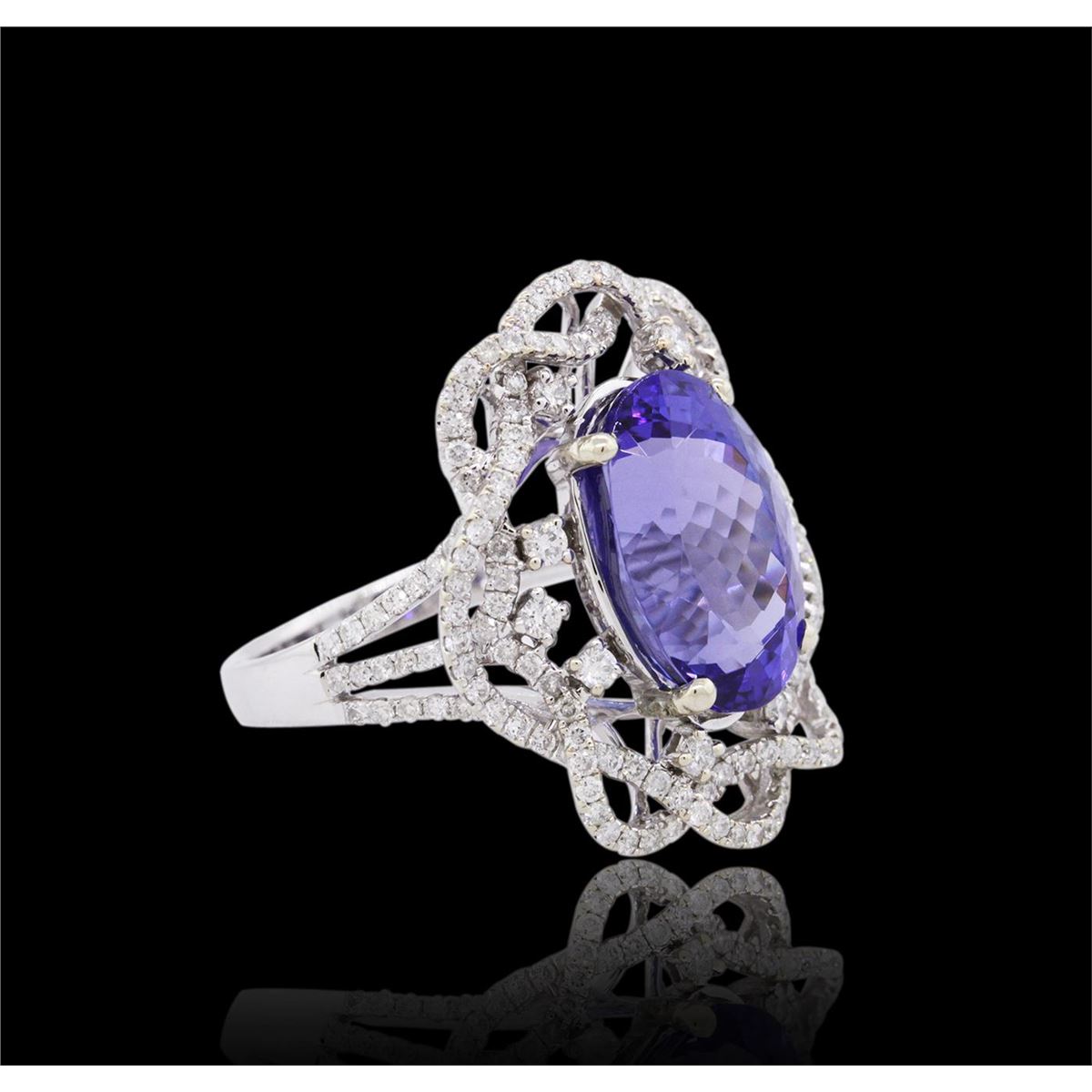 One ring featuring: 18KT white gold weighing 6.73 grams containing one tanzanite center stone with a total weight of 7.61ct and 162 round cut diamonds with a total weight of 0.96cts.