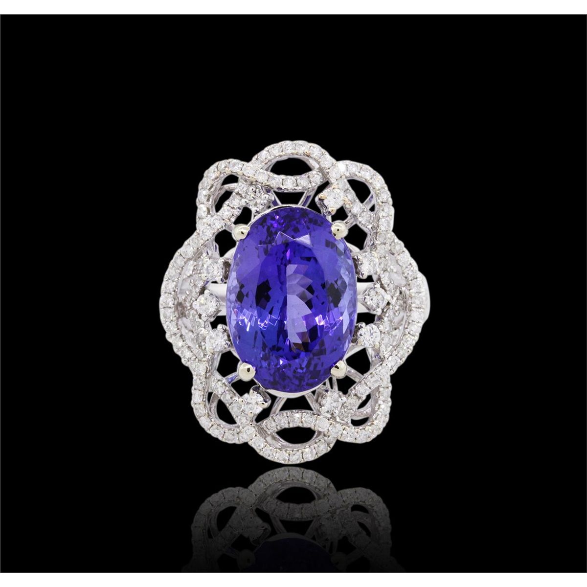 One ring featuring: 18KT white gold weighing 6.73 grams containing one tanzanite center stone with a total weight of 7.61ct and 162 round cut diamonds with a total weight of 0.96cts.