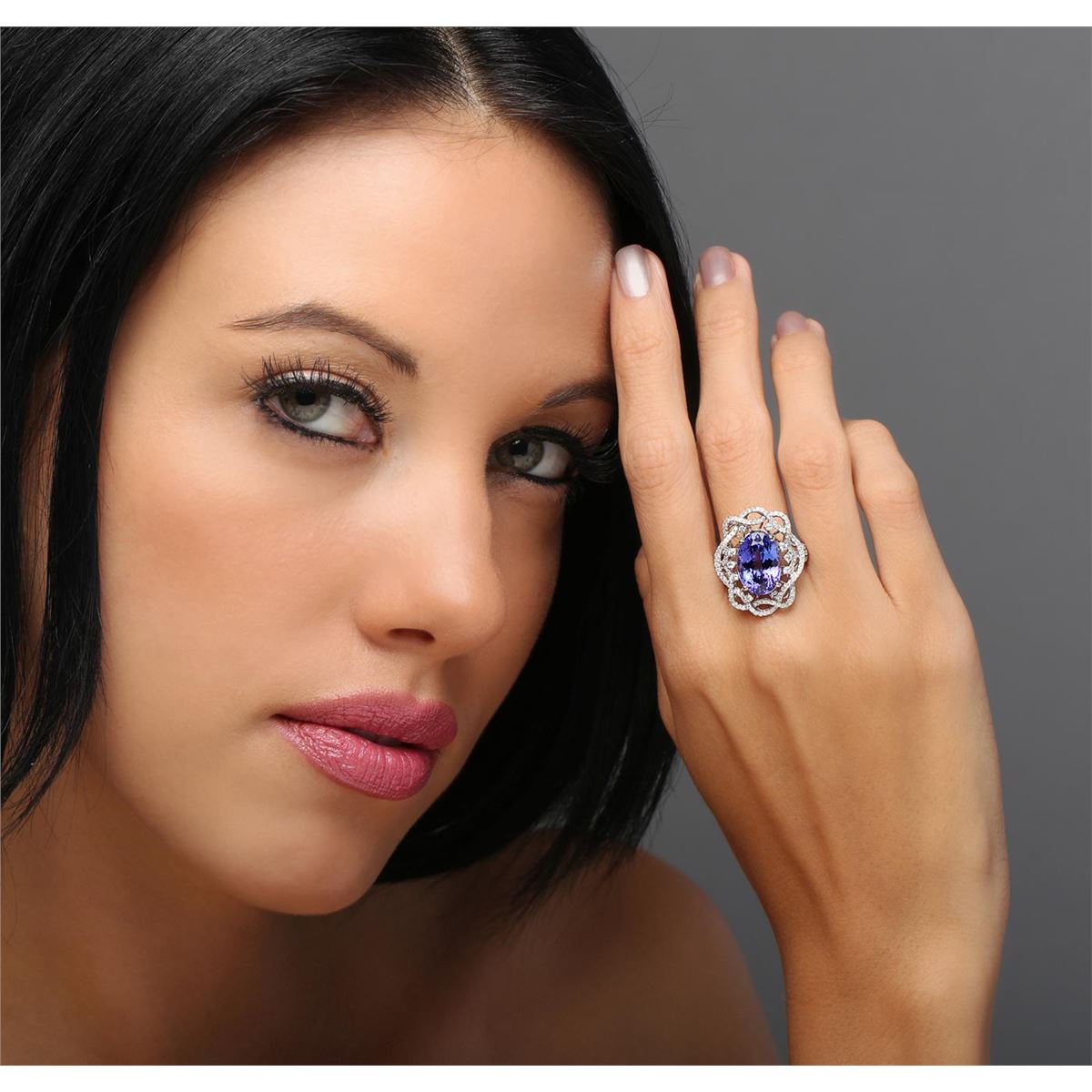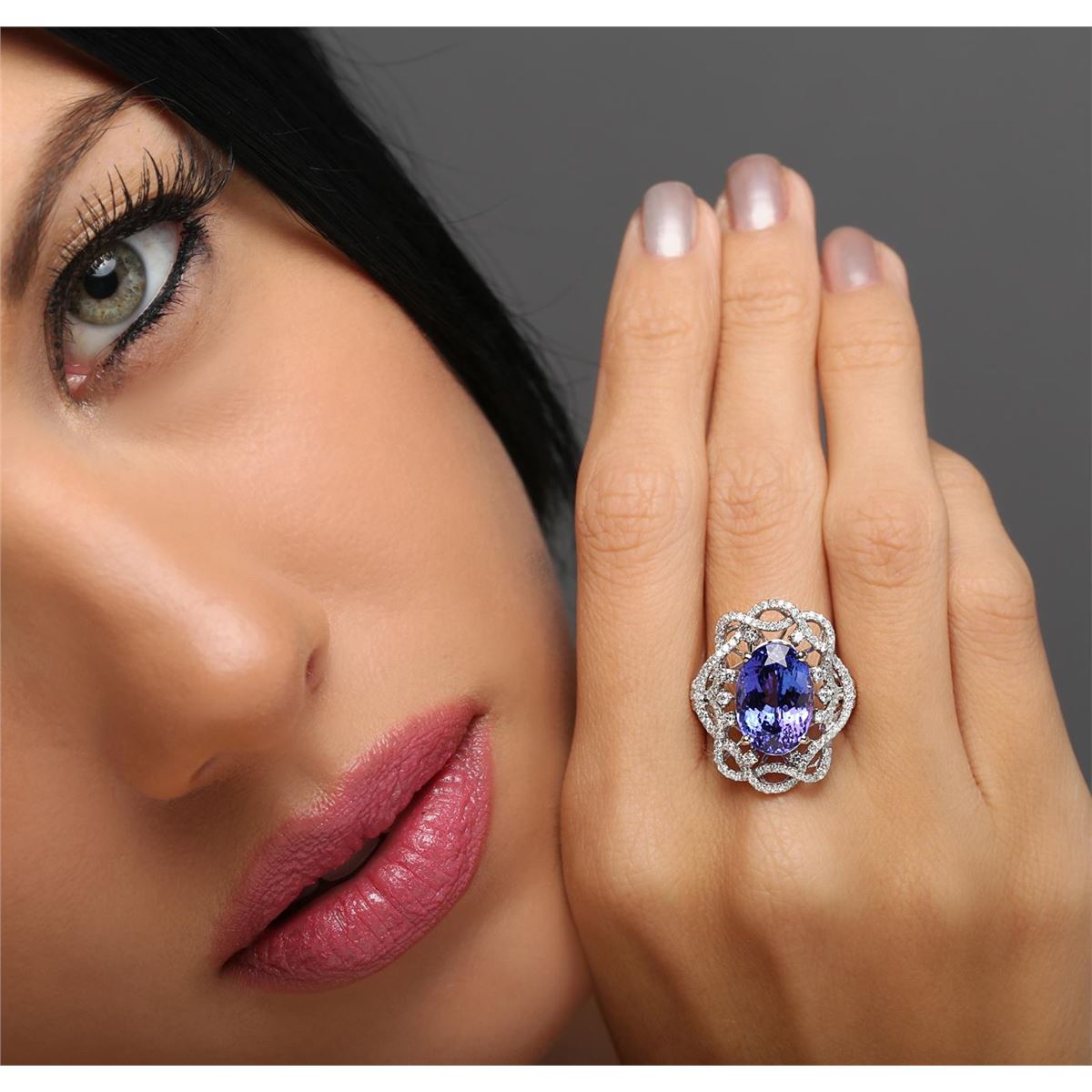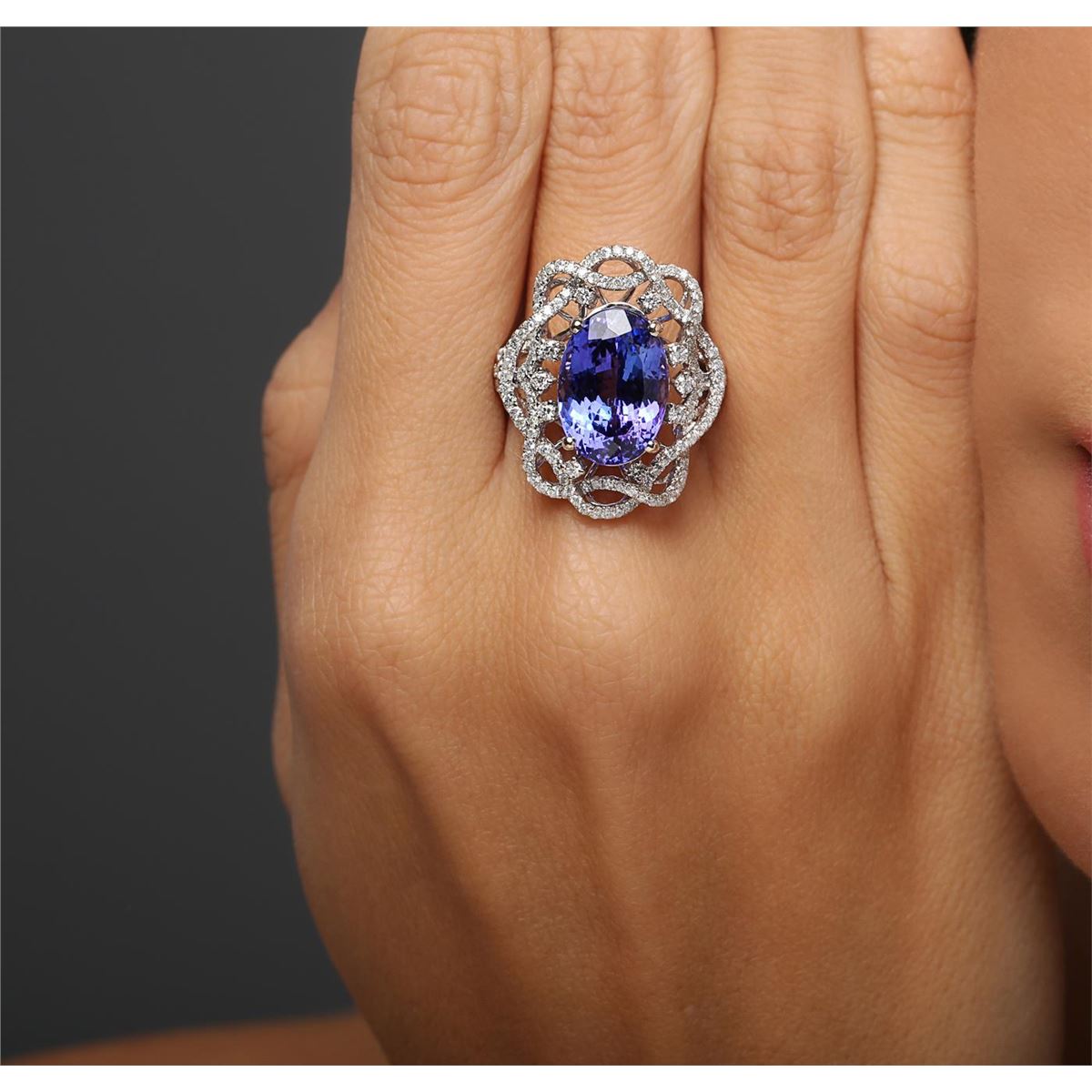 One ring featuring: 18KT white gold weighing 6.73 grams containing one tanzanite center stone with a total weight of 7.61ct and 162 round cut diamonds with a total weight of 0.96cts.