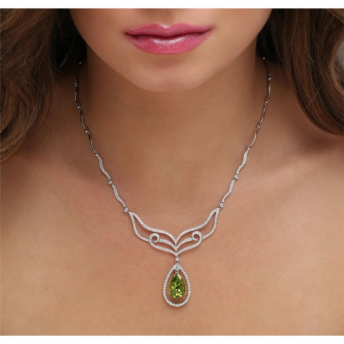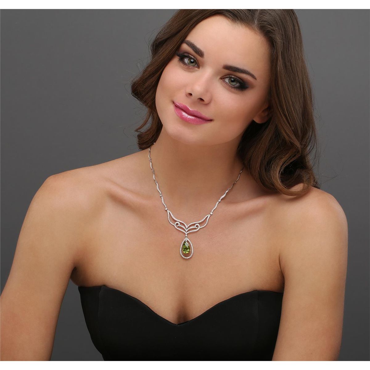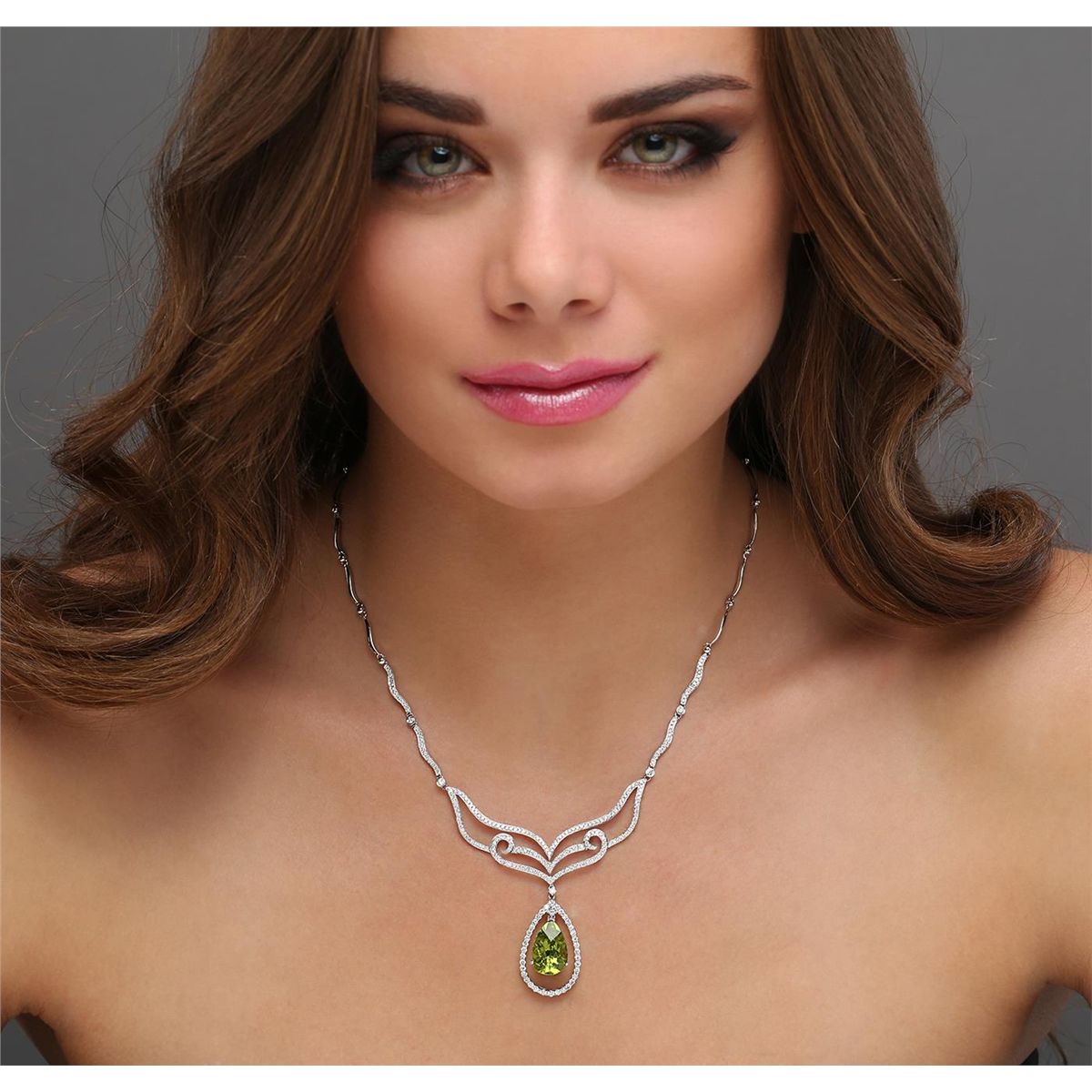 One necklace featuring: 18KT white gold weighing 17.70 grams containing one peridot with a total weight of 8.21ct and 262 round cut diamonds with a total weight of 2.01cts.