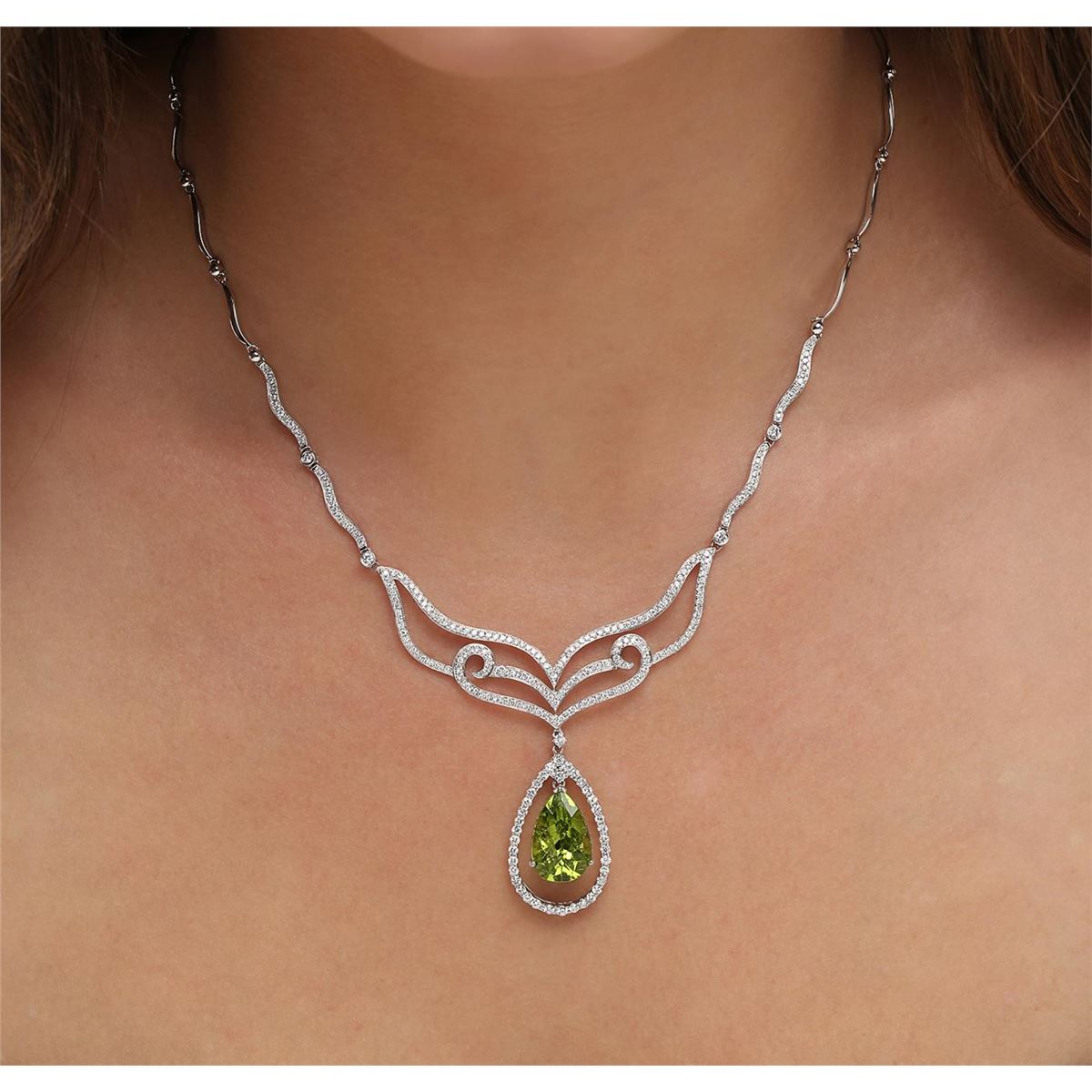 One necklace featuring: 18KT white gold weighing 17.70 grams containing one peridot with a total weight of 8.21ct and 262 round cut diamonds with a total weight of 2.01cts.