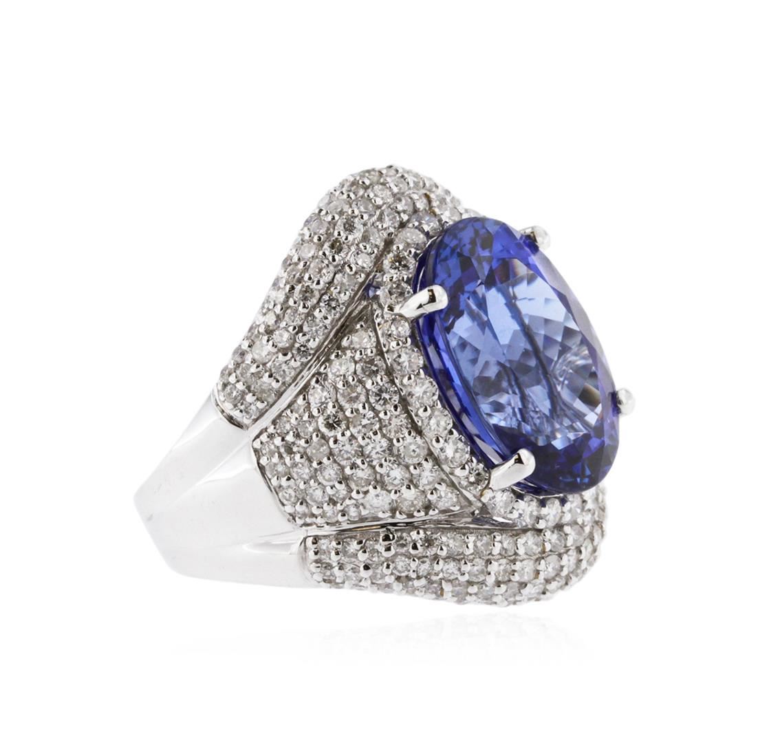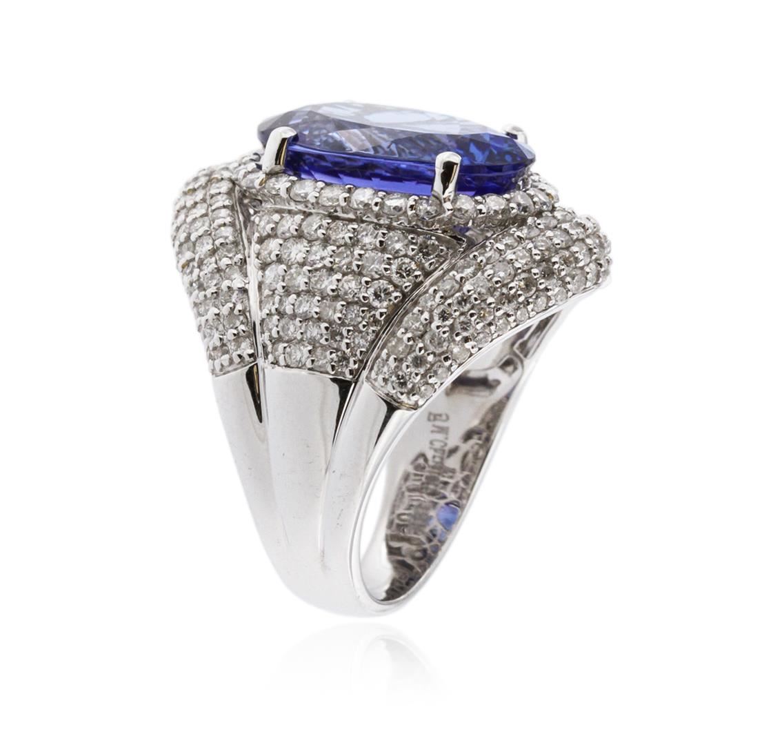 One ring featuring: 18KT white gold weighing 11.10 grams containing one tanzanite center stone with a total weight of 8.30ct and round diamonds with a total weight of 2.18ct.