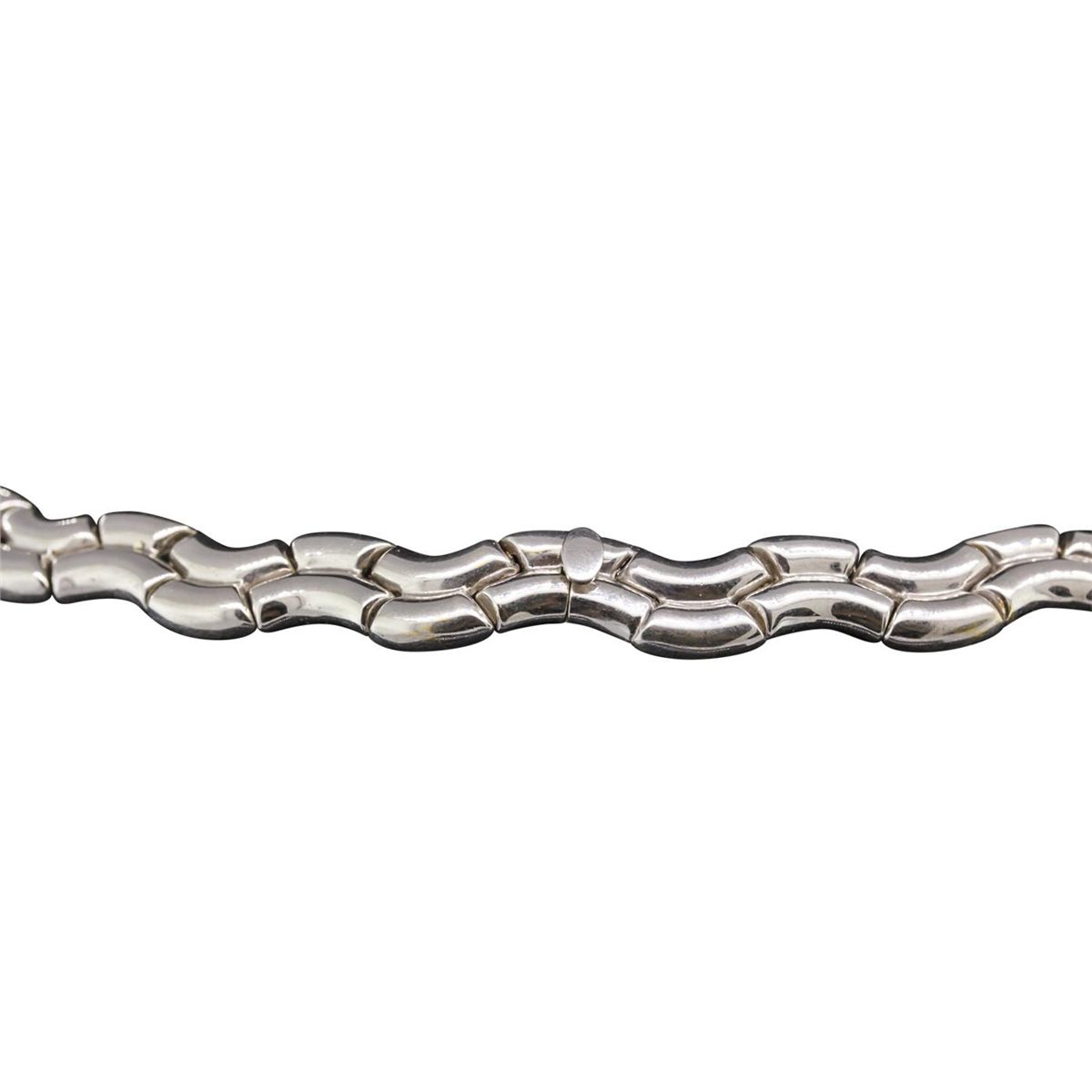 One electronically tested 18KT white gold Ladies combination cast & assembled necklace with a hidden box clasp with a bright polish finish. Condition is new. Measurements: 14" in length. Identified with markings of "750". Containing: Forty channel set baguette cut (tapered) diamonds, measuring from 2.00 x 1.50 x 1.28mm (depth est.) to 3.70 x 2.20 x 1.87mm (depth est.) approximate. Total Weight of 40 Stones = 3.04ct. Clarity: VS-2. Color: J, Cut is Good. Thirty-Six channel set round brilliant cut diamonds, measuring 3.30 - 2.50 x 1.74mm (depth est.) approximate. Total Weight of 36 Stones = 3.21ct. Clarity: VS-2 to SI-2. Color: I - J, Cut is Good. Fifty-Two invisible set princess cut diamonds, measuring 2.00 x 2.00 x 1.50mm (depth est.) approximate. Total Weight of 52 Stones = 2.56ct. Clarity: SI-1 to SI-2. Color: I - J, Cut is Good. Total Weight of Diamonds 8.81ct. Total Weight of Necklace 96.50 grams. GGL Appraised at $58,115.00.