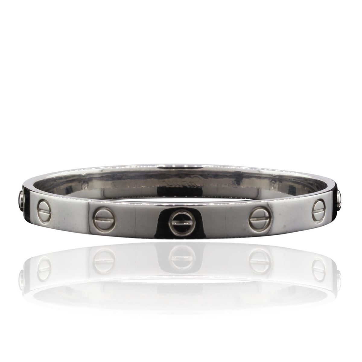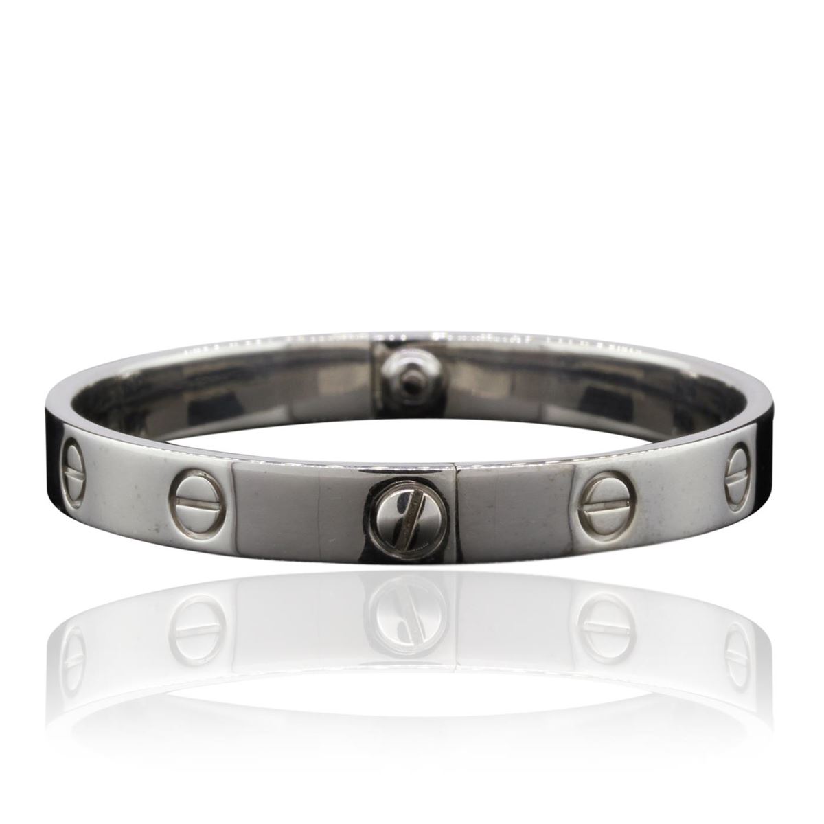 One 18KT White Gold Cartier Love Bangle Bracelet weighing a total of 30.8 grams.