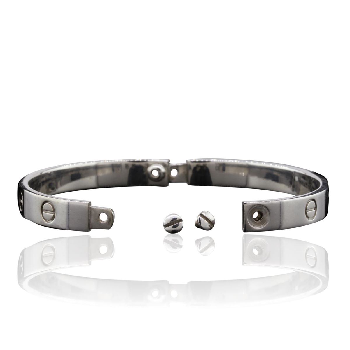 One 18KT White Gold Cartier Love Bangle Bracelet weighing a total of 30.8 grams.