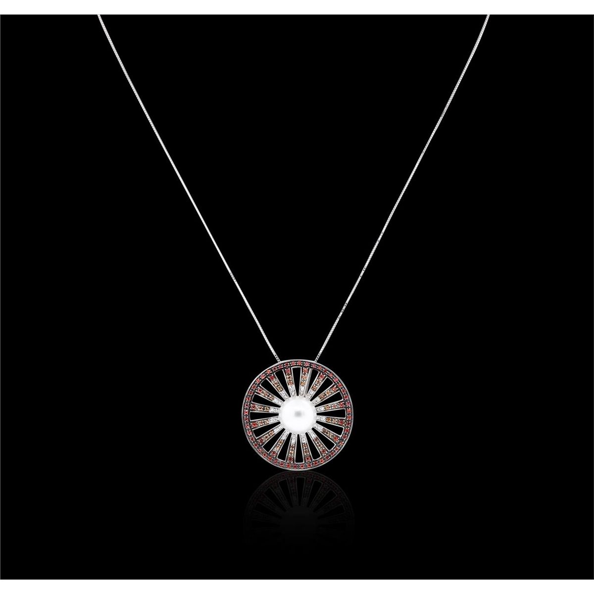 One pendant with chain featuring: 18KT white gold weighing 11.00 grams with chain containing one pearl center, sapphires with a total weight of 0.79cts, and 32 brilliant cut diamonds with a total weight of 0.12cts.