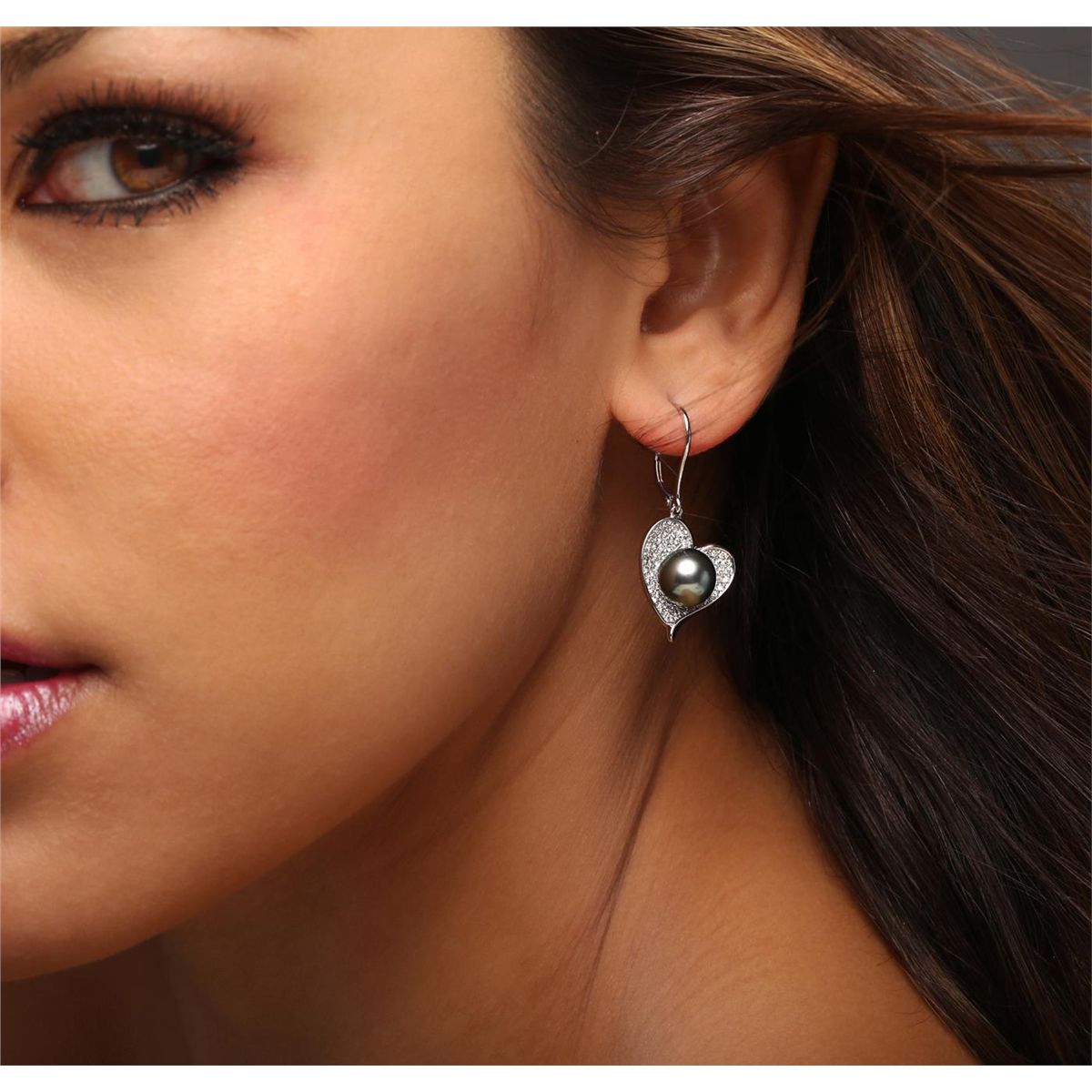 One pair of earrings featuring: 18KT white gold weighing 8.90 grams containing two Tahitian pearls measuring 9 mm and 124 brilliant cut diamonds with a total weight of 0.86cts.
