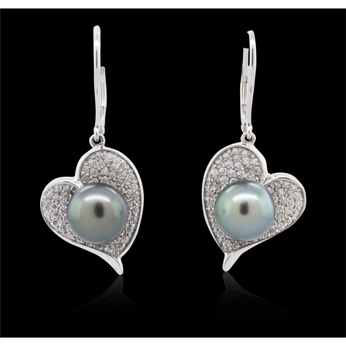 One pair of earrings featuring: 18KT white gold weighing 8.90 grams containing two Tahitian pearls measuring 9 mm and 124 brilliant cut diamonds with a total weight of 0.86cts.