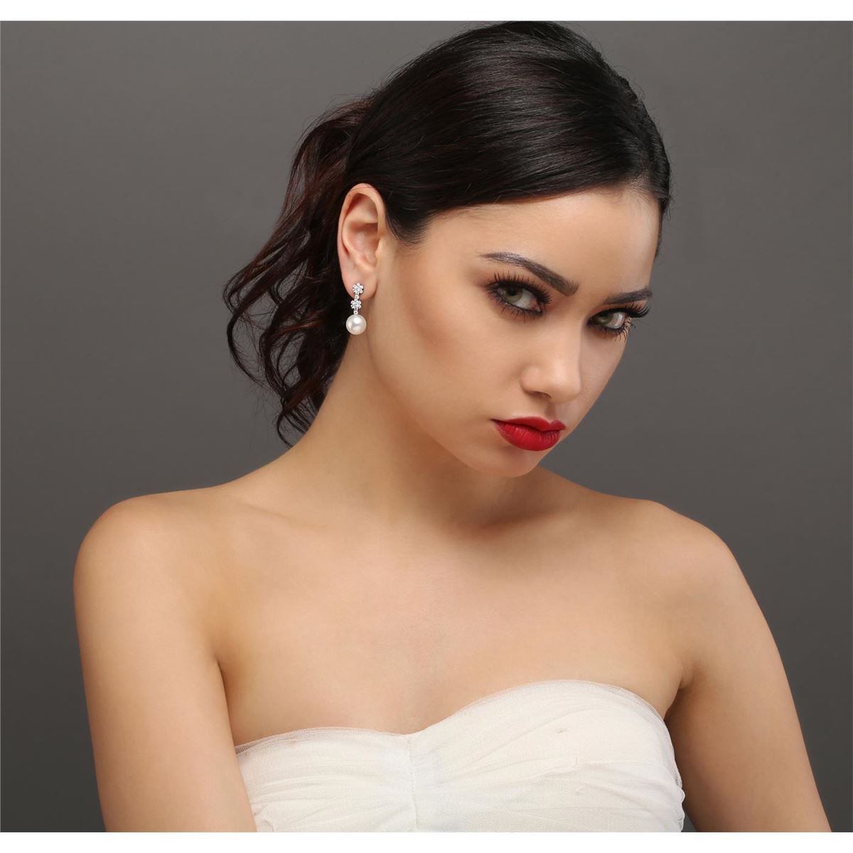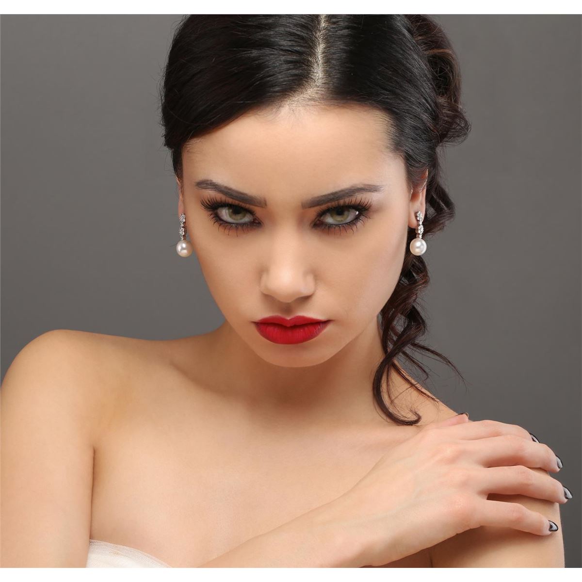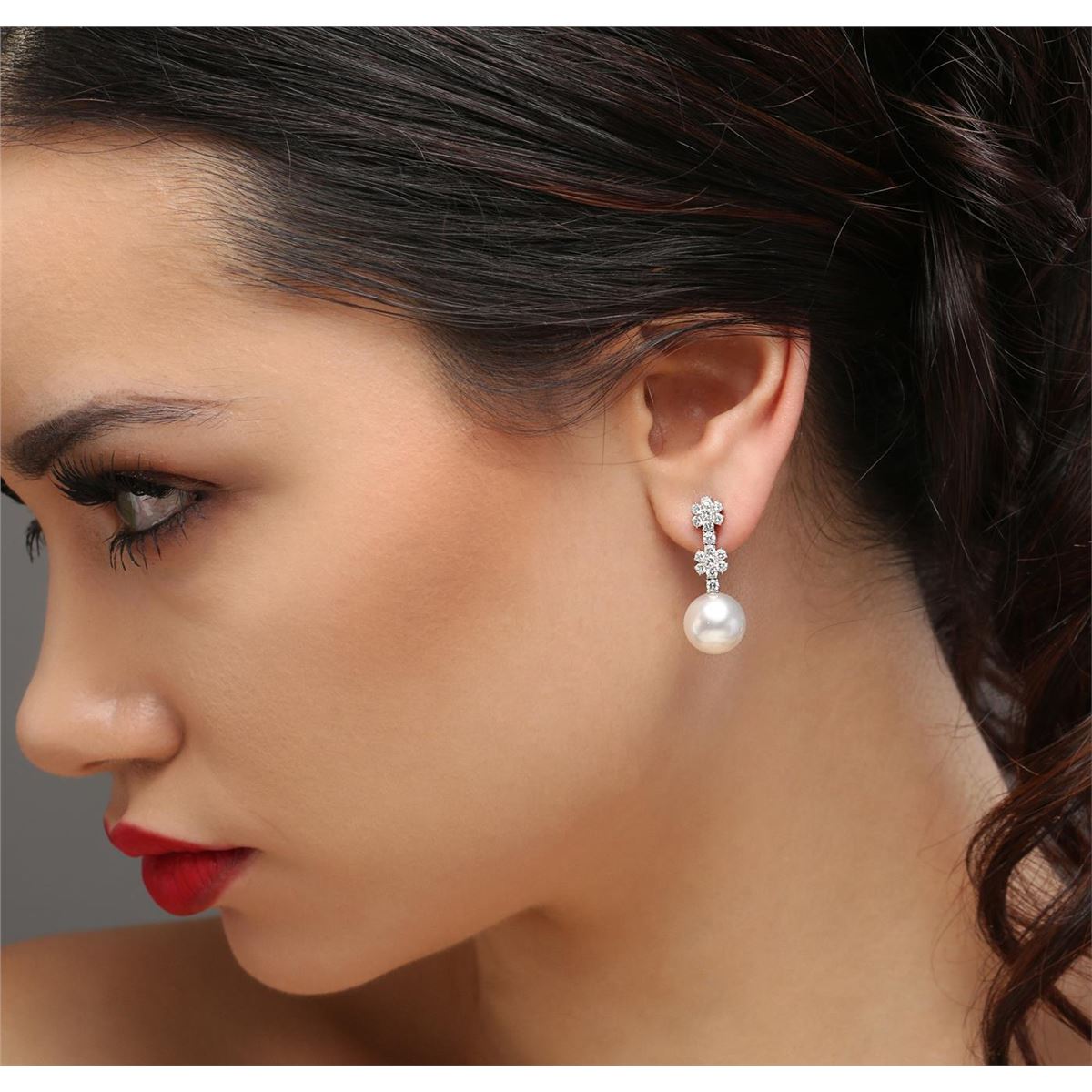 One pair of earrings featuring: 18KT white gold weighing 9.00 grams containing two pearls measuring approximately 12.00mm and round diamonds with a total weight of 1.50ct.