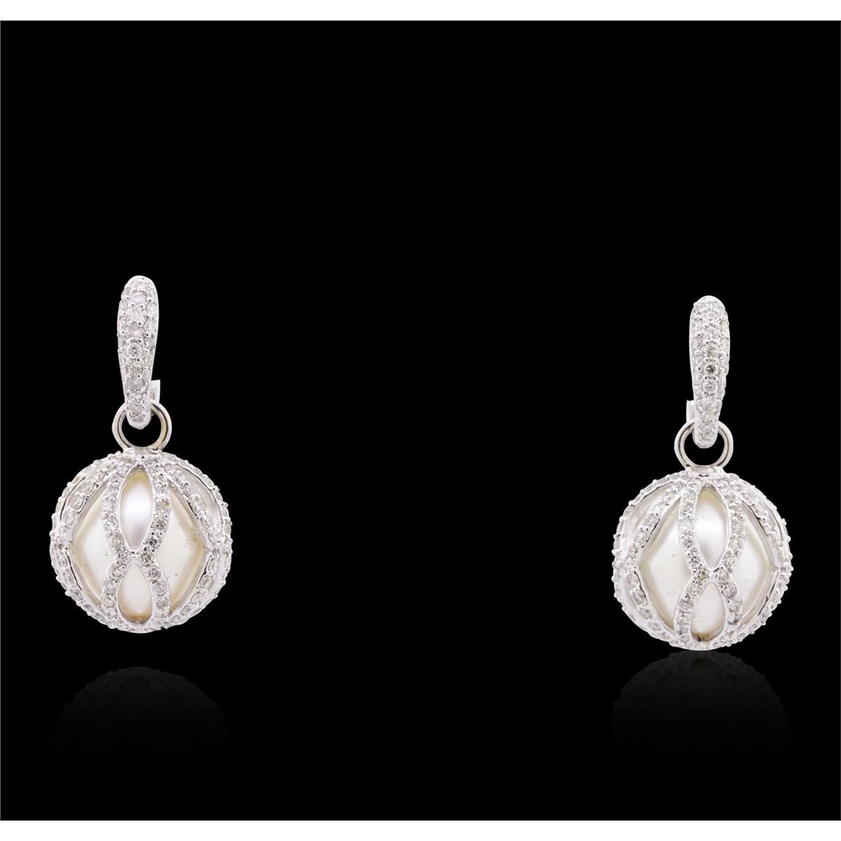One pair of earrings featuring: 18KT white gold weighing 9.21 grams containing two pearls measuring 12.00 mm and 348 round diamonds with a total weight of 2.50cts.