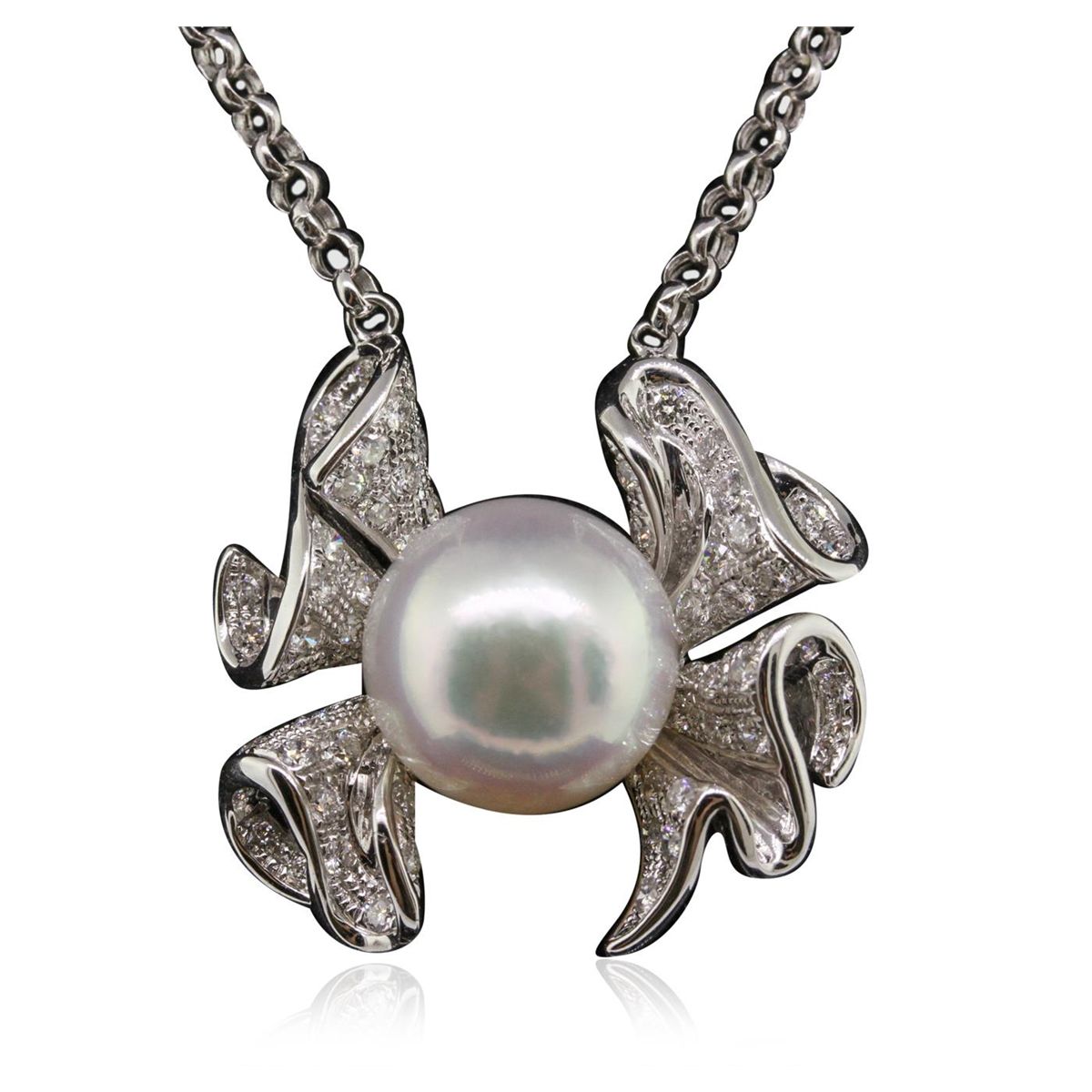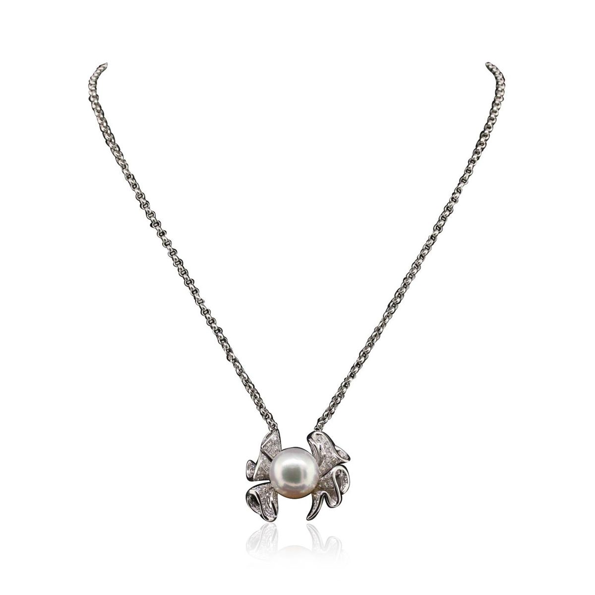 One necklace featuring: 18KT white gold with a total weight of 10.84 grams, (1) pearl measuring 12.70mm, and (66) diamonds with a total weight of 1.13ctw.