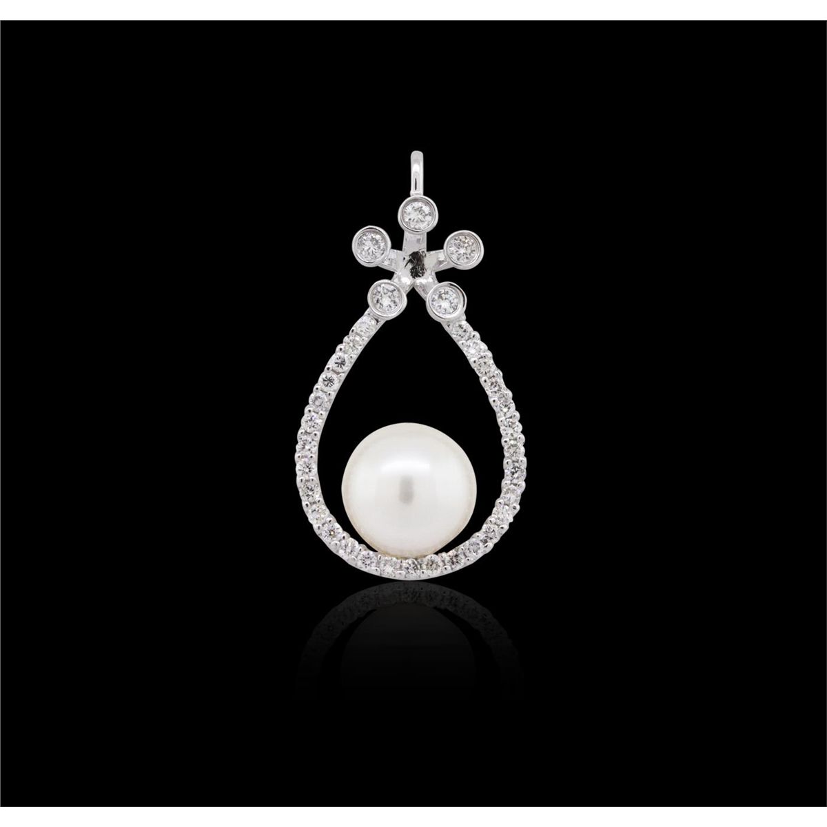 One pendant featuring: 18KT white gold weighing 2.80 grams containing one pearl measuring 9.00 mm and round cut diamonds with a total weight of 0.48cts.