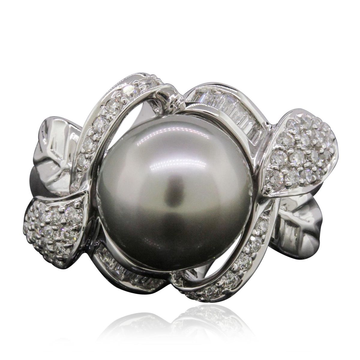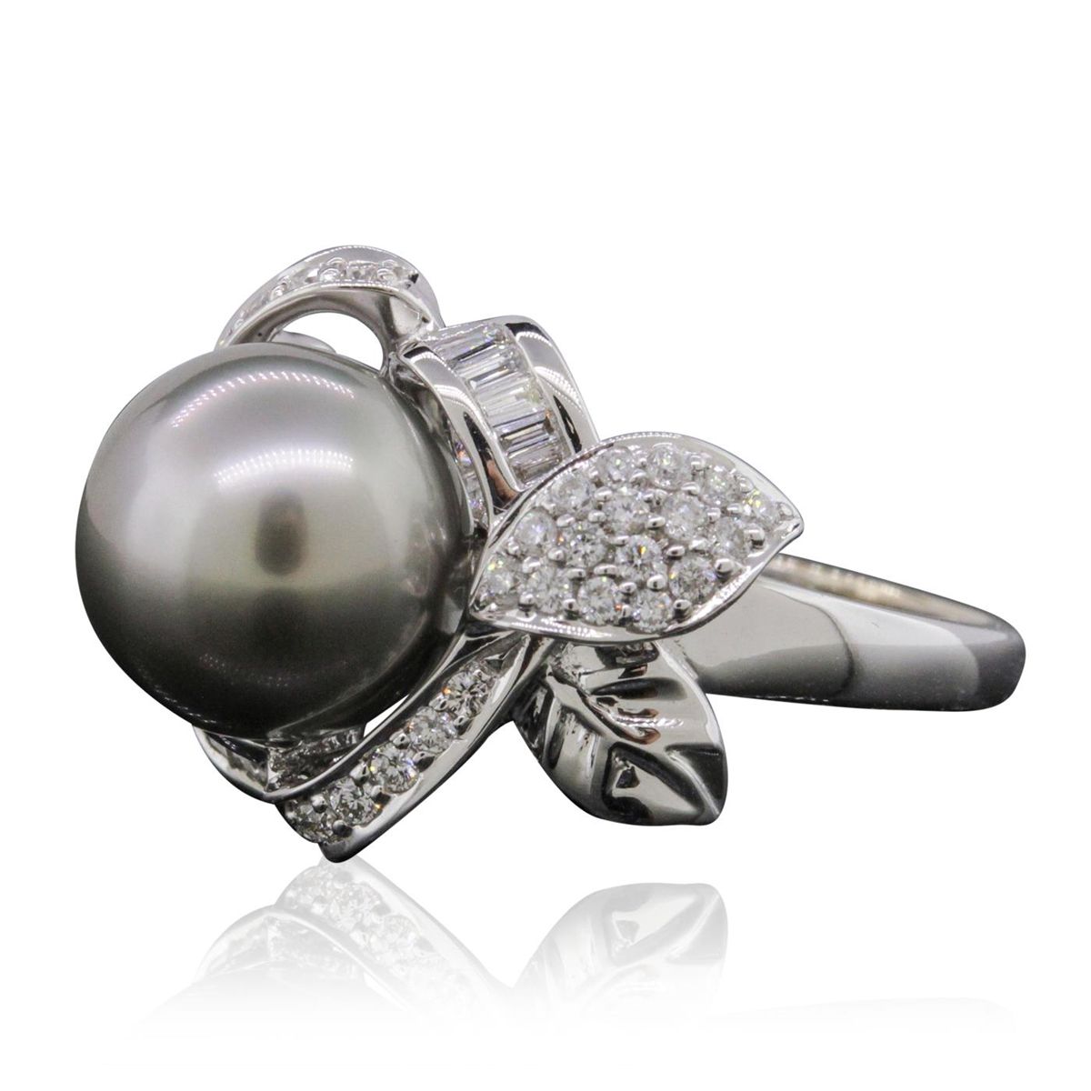 One ring featuring: 18KT white gold weighing 9.2 grams containing one pearl measuring 10.00mm, 44 brilliant cut diamonds with a total weight of 0.47cts, and baguette cut diamonds with a total weight of 0.60cts. .