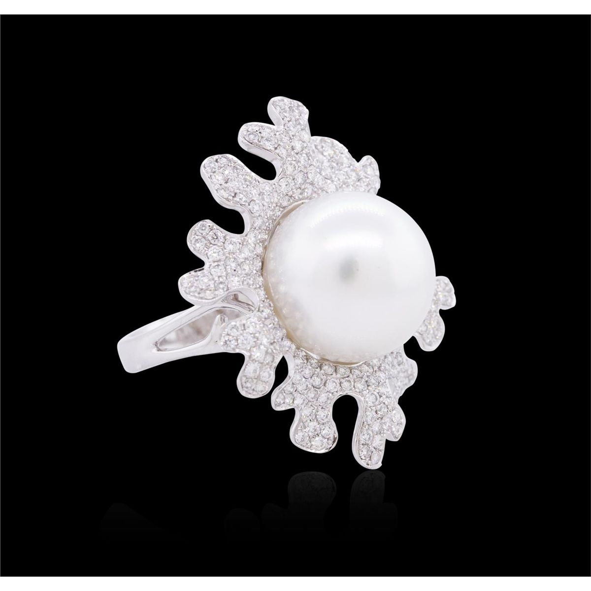One ring featuring: 18KT white gold weighing 8.67 grams containing one pearl measuring 14.00 mm and 207 round diamonds with a total weight of 1.34cts.