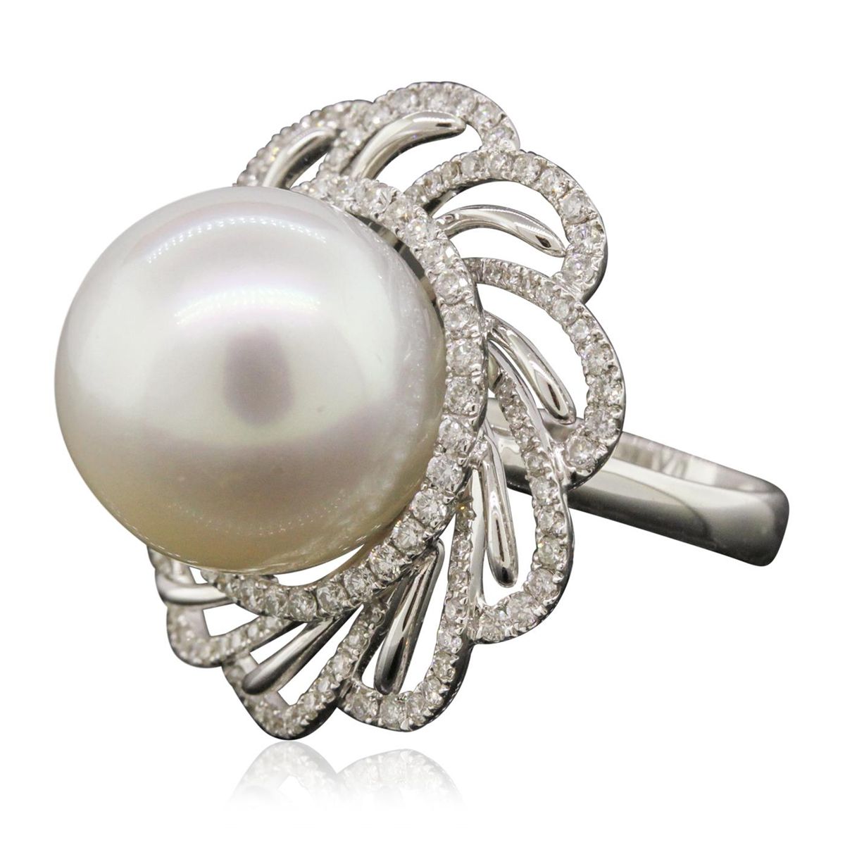 One ring featuring: 7.73 grams of 18KT white gold, (1) pearl measuring 15.00mm, (134) round cut diamonds with a total weight of 1.02cts.