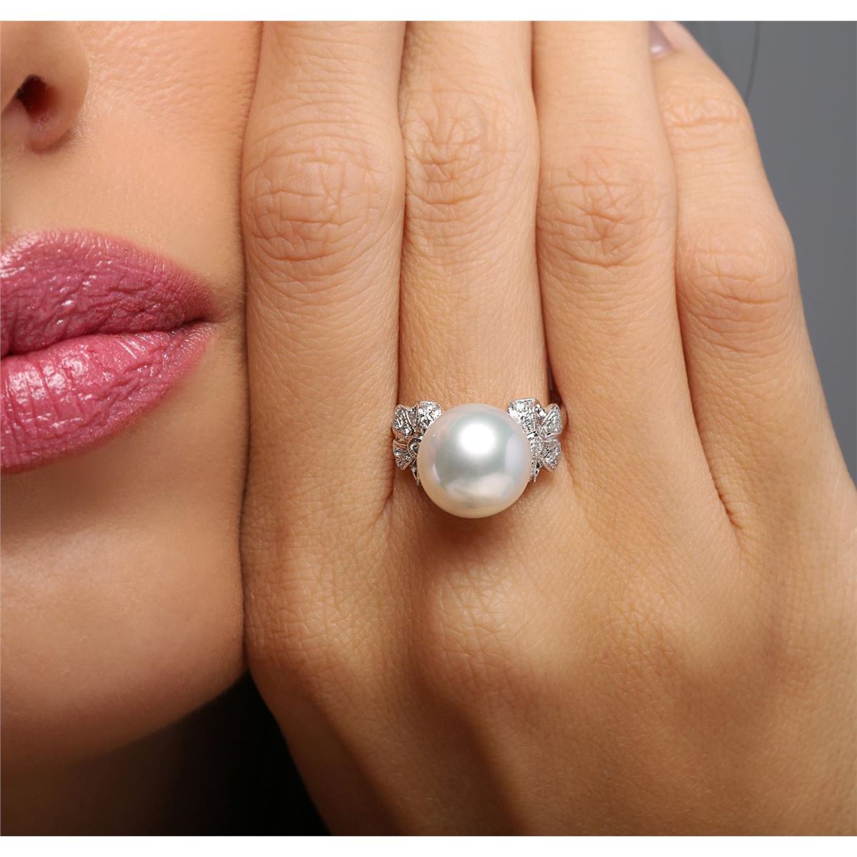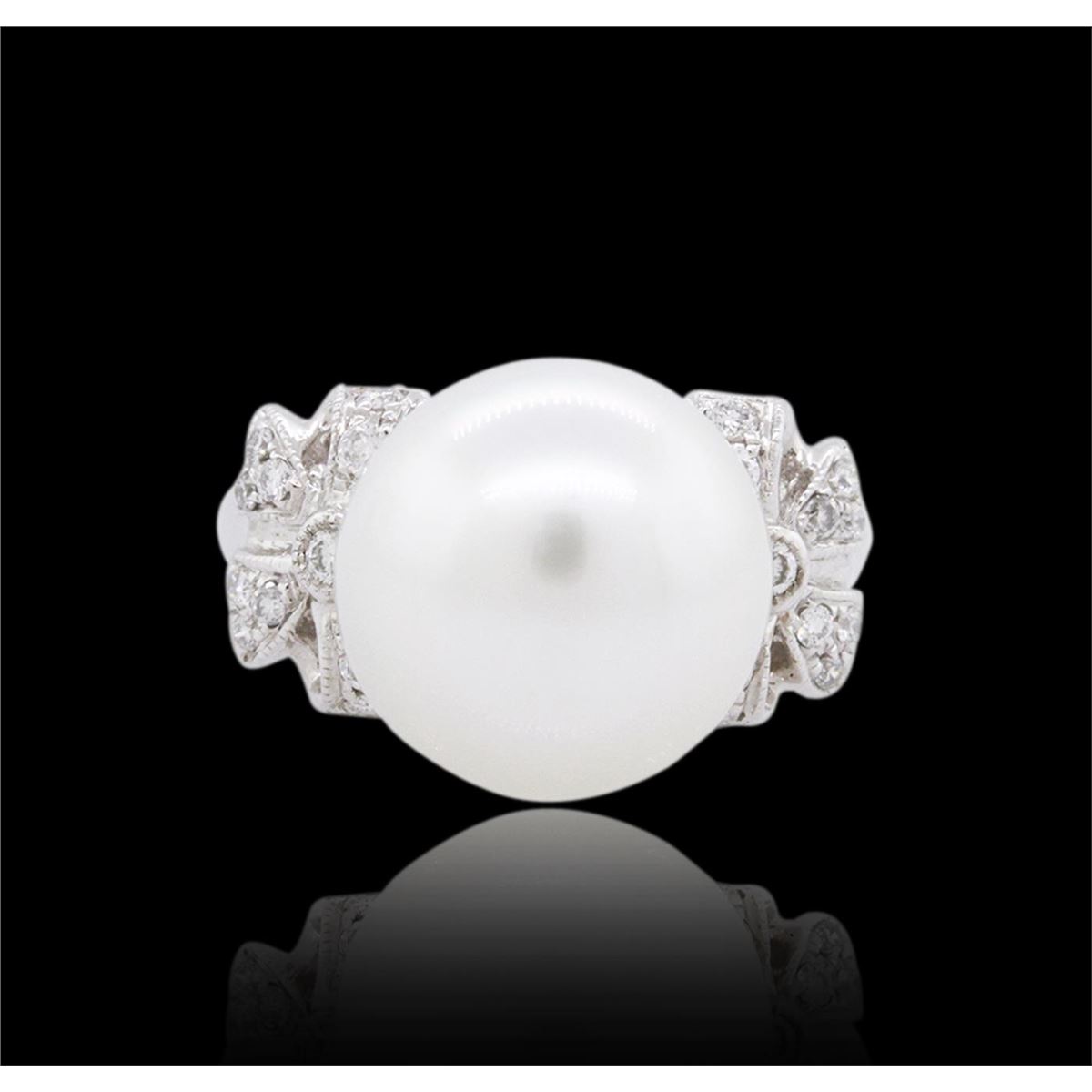 One ring featuring: 18KT white gold weighing 3.84 grams containing one pearl measuring 12.00 mm and 22 round cut diamonds with a total weight of 0.27cts.