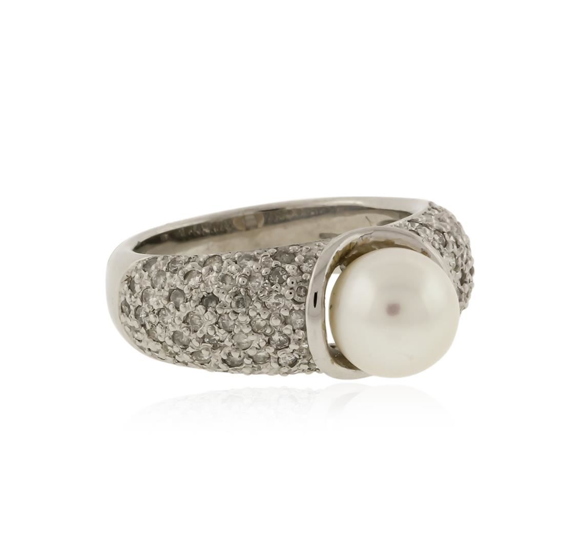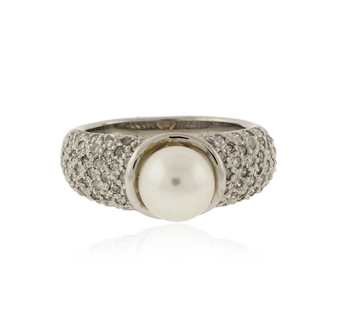 One ring featuring: 18KT white gold weighing 7.70 grams containing one pearl measuring approximately 7.50 mm and pave set round diamonds with a total weight of 0.75ct.