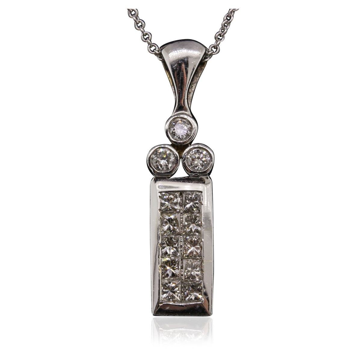 One pendant with chain featuring: 18KT White Gold with a total weight of 6.50 grams, and Diamonds.