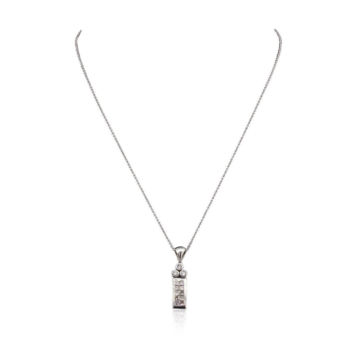 One pendant with chain featuring: 18KT White Gold with a total weight of 6.50 grams, and Diamonds.