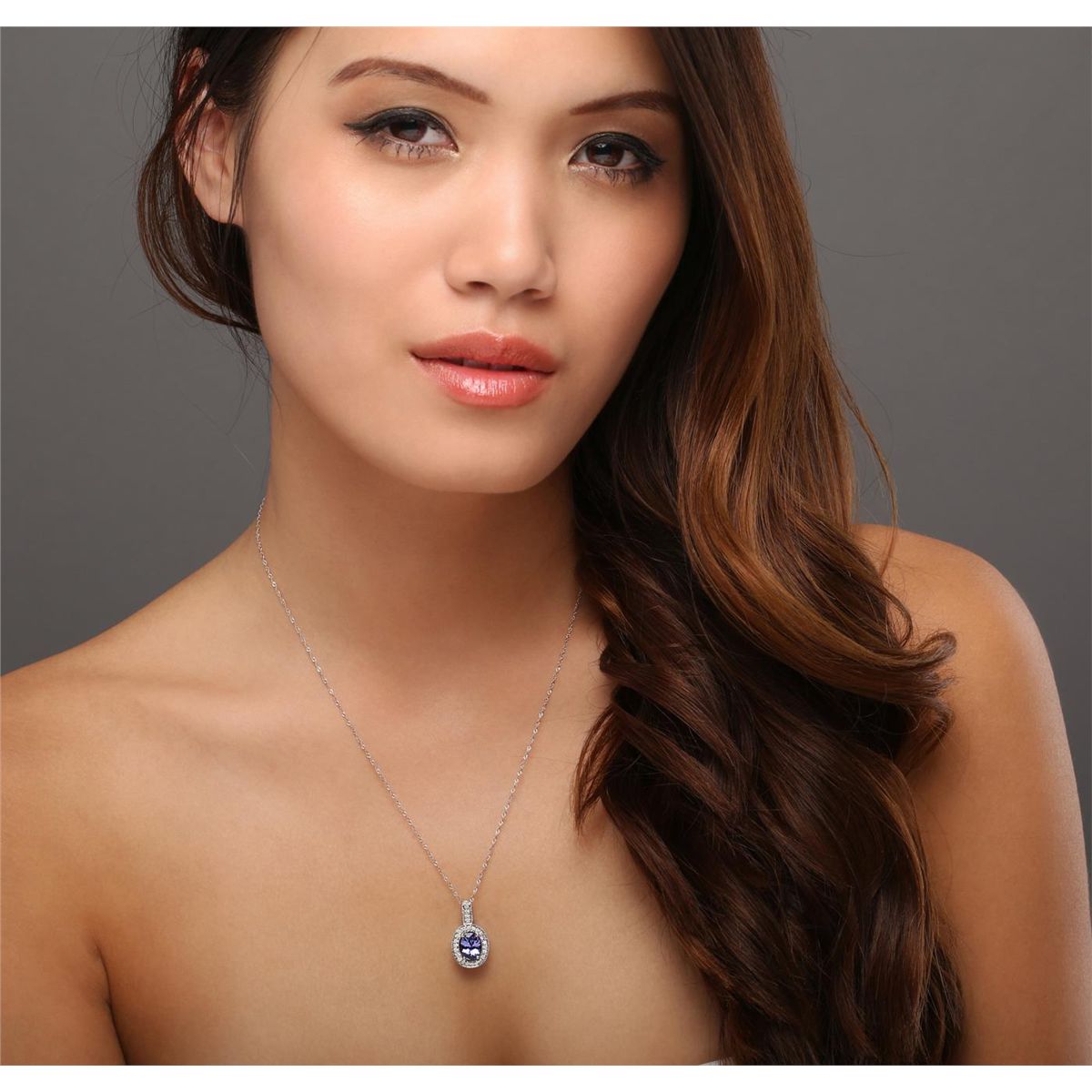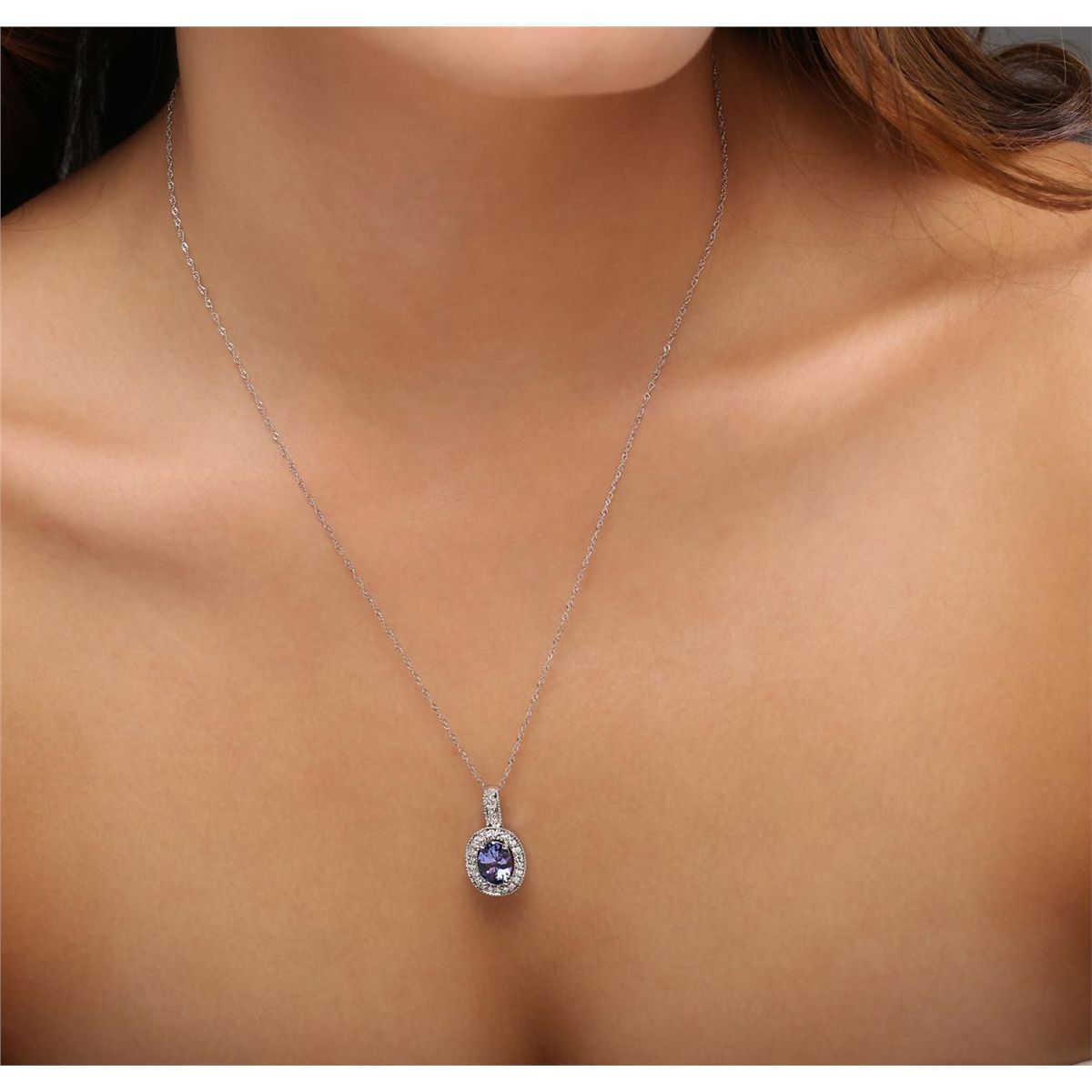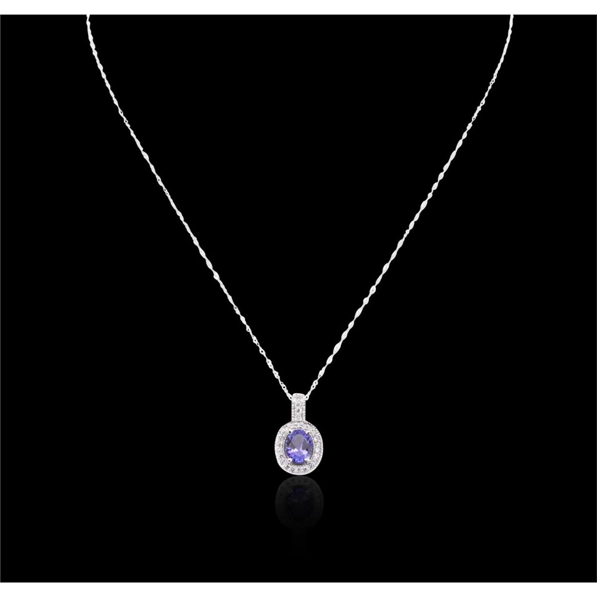 One pendant with chain featuring: 18KT white gold weighing 5.50 grams containing one tanzanite measuring 9 x 7 mm and 26 brilliant cut diamonds with a total weight of 0.34cts