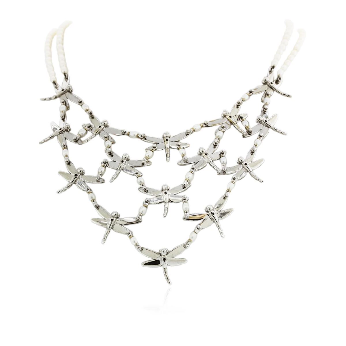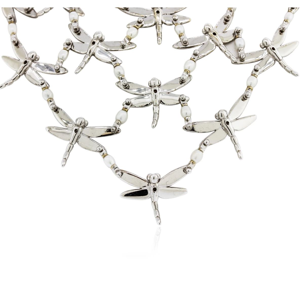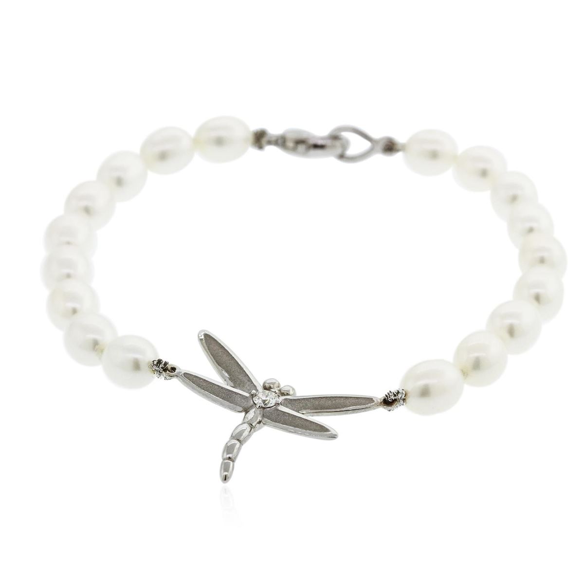 One suite electronically tested 18KT white gold Ladies combination cast & assembled necklace and bracelet with a hidden box clasp with a bright polish finish. Trademark is Tiffany & Co.. Identified with markings of "750". Condition is excellent. Containing: Eighteen prong set round brilliant cut diamonds, measuring 2.50 - 2.50 x 1.50mm (depth est.) approximate total weight of 18 Stones = 1.03ct. Clarity of VS-1, Color of F, Cut is Very Good. Twenty Eighty cultured pearls,7.50mm x 6.00mm in size. The pearls are white in color with a high luster, thick nacre, lightly spoted. One Hundred Fifty Six cultured pearls 4.20mm x 3.10mm in size. The pearls are white in color with a high luster, thick nacre, lightly spotted. Total Weight of Diamonds 1.03ct. Total Weight of Necklace And Bracelet 72.70gm. GGL Appraised at $35,695.00.