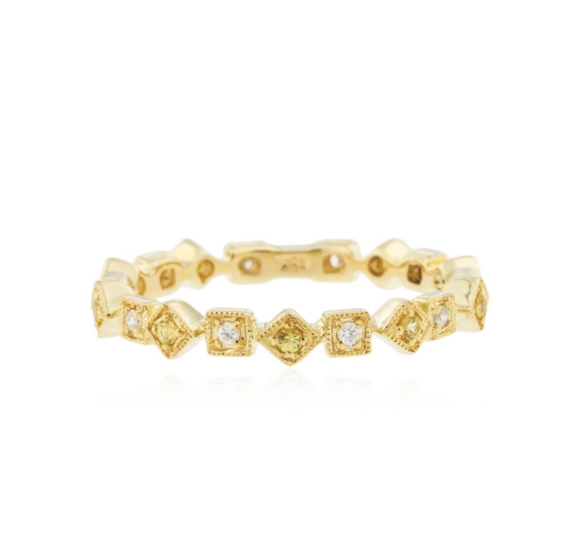One ring featuring: 18KT yellow gold weighing 2.49 grams containing yellow diamonds with a total weight of 0.05ct and white diamonds with a total weight of 0.05ct.