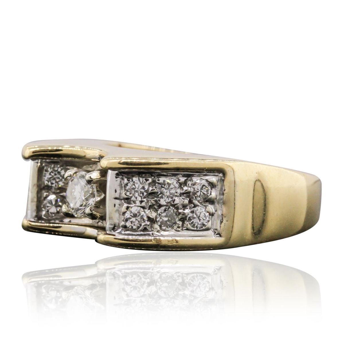One ring featuring: 18KT Yellow Gold with a total weight of 8.60 grams, and Pave Set Round Diamond Center with a total weight of 0.45ctw.