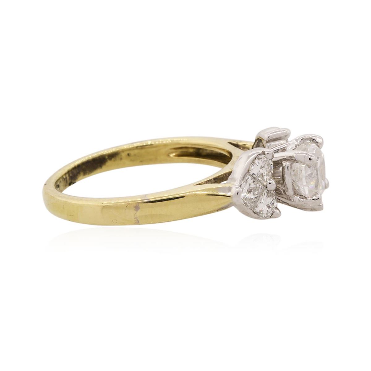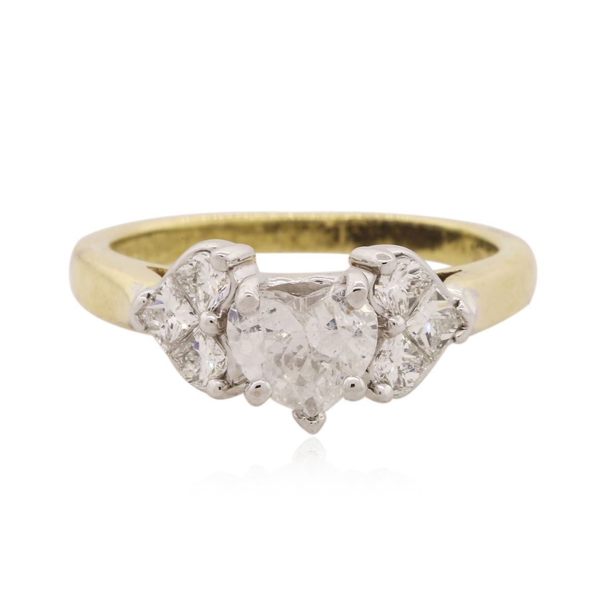 One electronically tested 18KT yellow gold Ladies combination cast & assembled engagement ring with a bright polish finish. Condition is new. Identified with markings of "18K". Containing: One prong set heart shaped cut diamond, measuring 6.00 x 5.60 x 3.53mm (depth est.) approximate weight of 0.85ct. Clarity: I-2. Color: G, Cut is Good. Two invisible set princess cut diamonds, measuring 2.50 x 2.50 x 1.88mm (depth est.) approximate total weight of 2 Stones = 0.19ct. Clarity: VS-2. Color: I - J, Cut is Good. Four prong set sheild cut diamonds, measuring 2.50 x 2.50 x 0.00mm (depth est.) approximate total weight of 4 Stones = 0.40ct. Clarity: SI-1. Color: H, Cut is Good. All diamonds are graded in the mounting, unless otherwise stated. Total Weight of Diamonds 1.44ct. Total Weight of Engagement Ring 4.60 grams. GGL Appraised at $8,450.00.