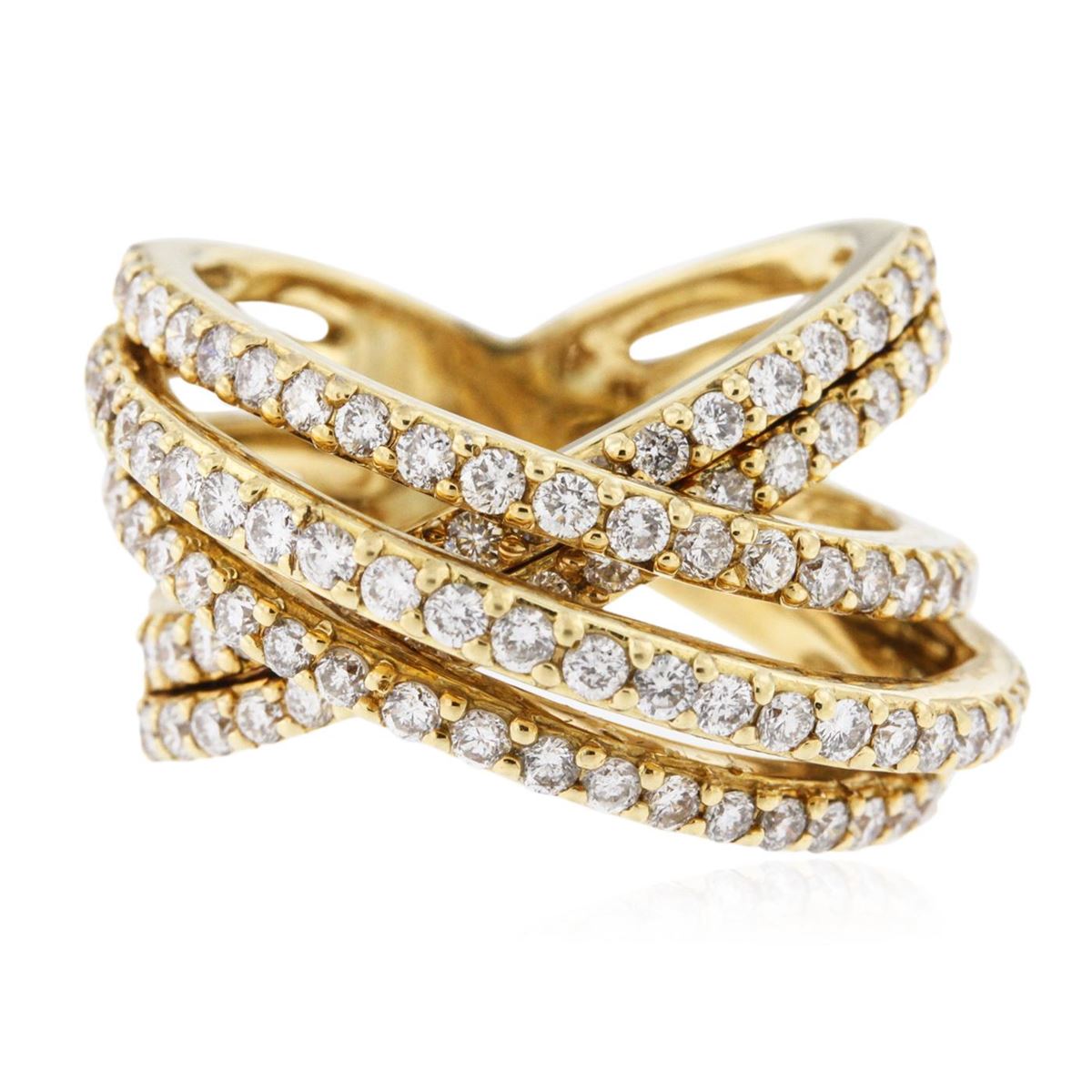 One electronically tested 18KT yellow gold ladies cast diamond ring with a bright polish finish. Trademark is Sonia B. Identified with markings of "18K". Condition is new. Containing: One Hundred Nine prong set round brilliant cut diamonds, measuring 1.60 - 1.60 x 0.96mm (depth est.) approximate total weight of 109 Stones = 1.62ct. Clarity: SI-1 to SI-2. Color: H - I, Cut is Good. All diamonds are graded in the mounting, unless otherwise stated. Total Weight of Diamonds 1.62ct. Total Weight of Ring 14.00. grams. GGL Appraised at $5,765.00.