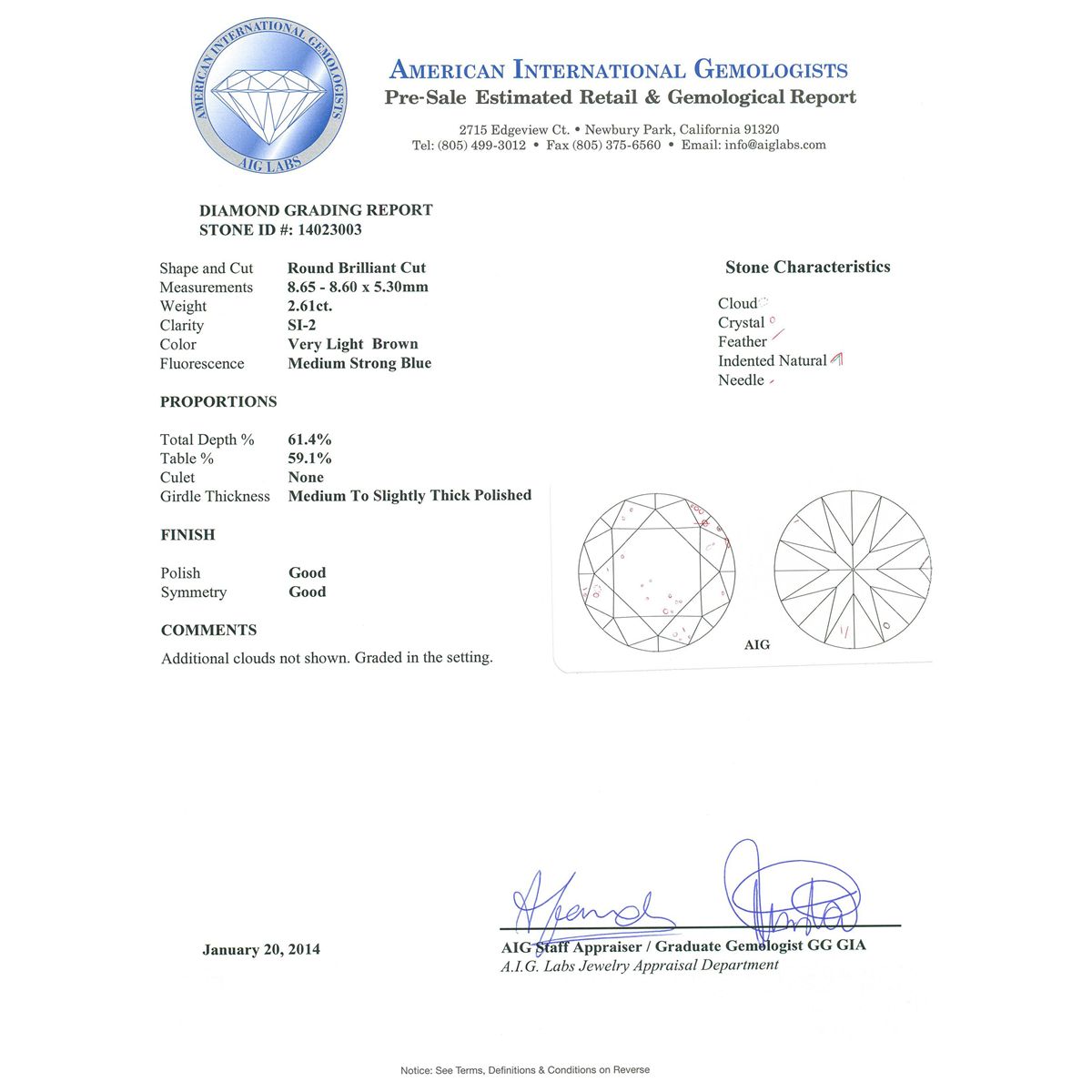 Regarding Appraised Jewelry, Watches and Loose Stones –