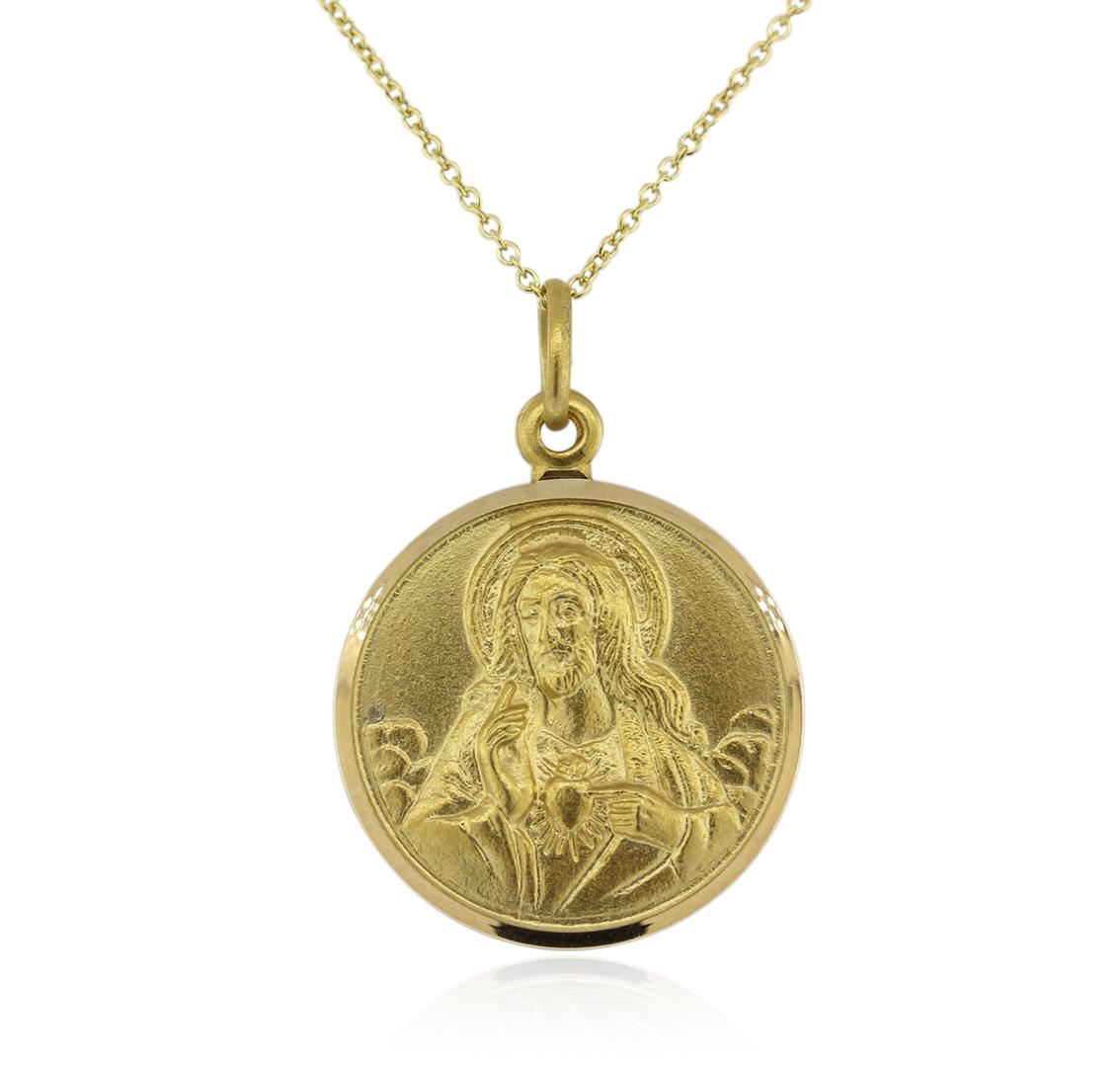 One sacred heart pendant with chain featuring: 18KT yellow gold weighing 6.51 grams.