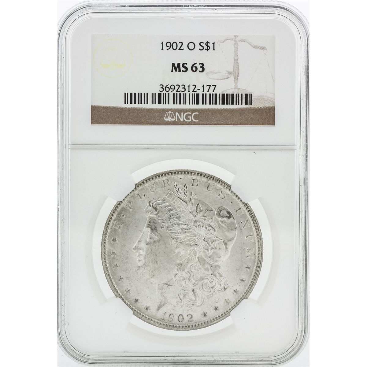 One 1902-O NGC MS63 Morgan Silver Dollar.