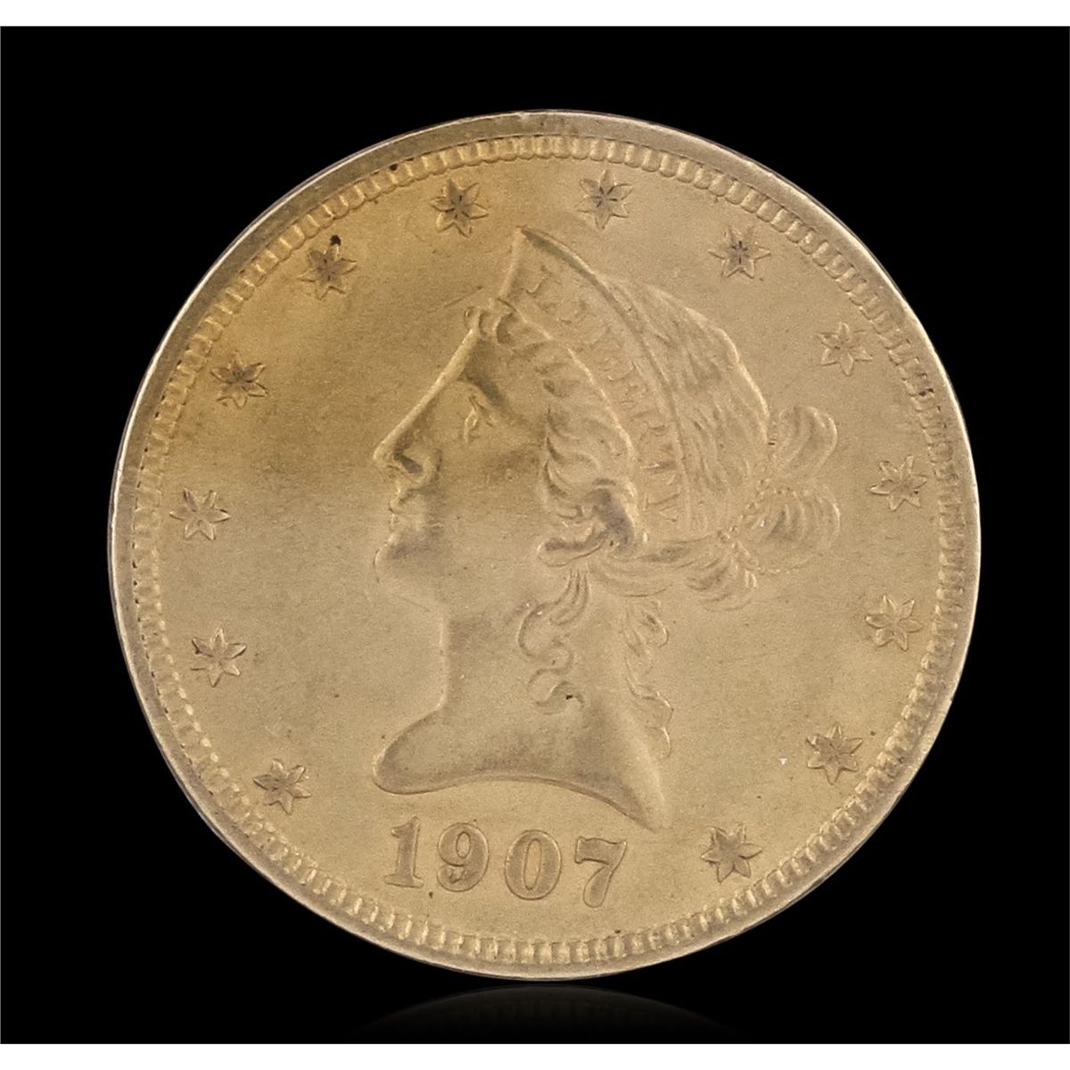 One 1907 $10 Eagle Liberty Head Gold Coin.